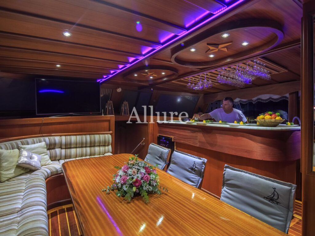 Allure gulet is a gulet with a lot of allure! This fantastic gulet with elegantly decorated cabins is an excellent choice for a top holiday. The yacht has 7 cabins all with air conditioning and private shower and toilet and can accommodate a total of 14 people.