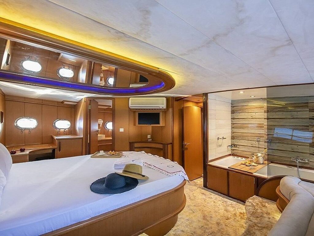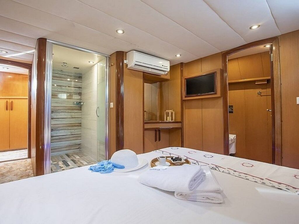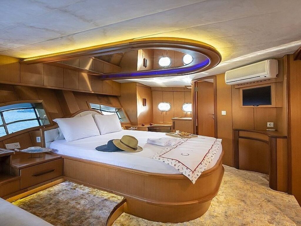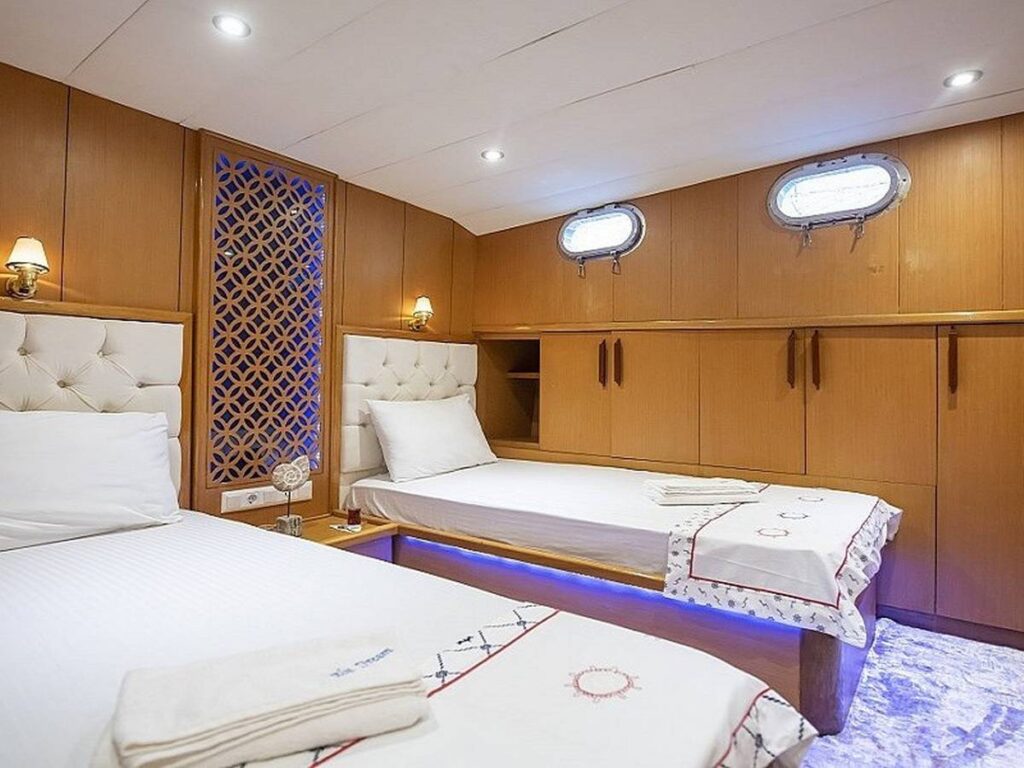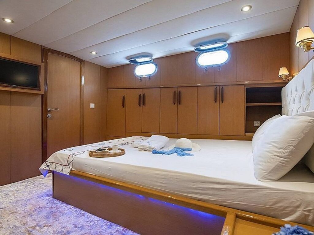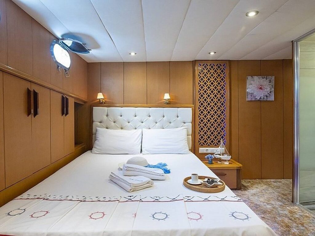 Blue Dream Gulet departs from Marmaris and has a capacity of 8 people with 4 cabins. All cabins of our yacht have air conditioning, shower and toilet. Blue Dream, which also has a Jacuzzi tub in the master cabin, has a beautiful fully equipped kitchen. You can enjoy this special holiday while indoor and outdoor dining tables are set up where you can enjoy the most mouth-watering dishes.