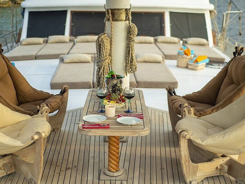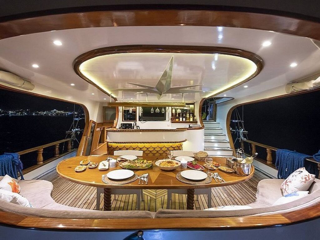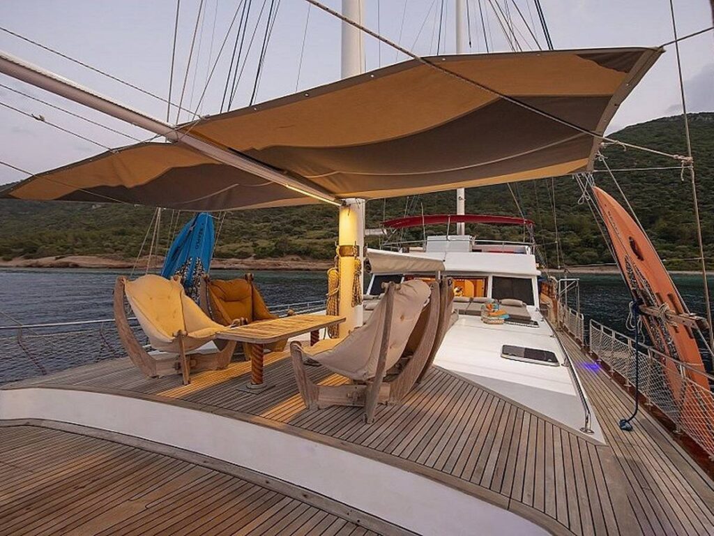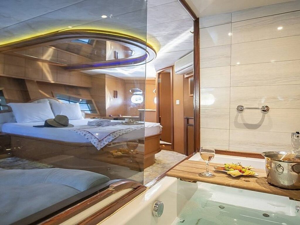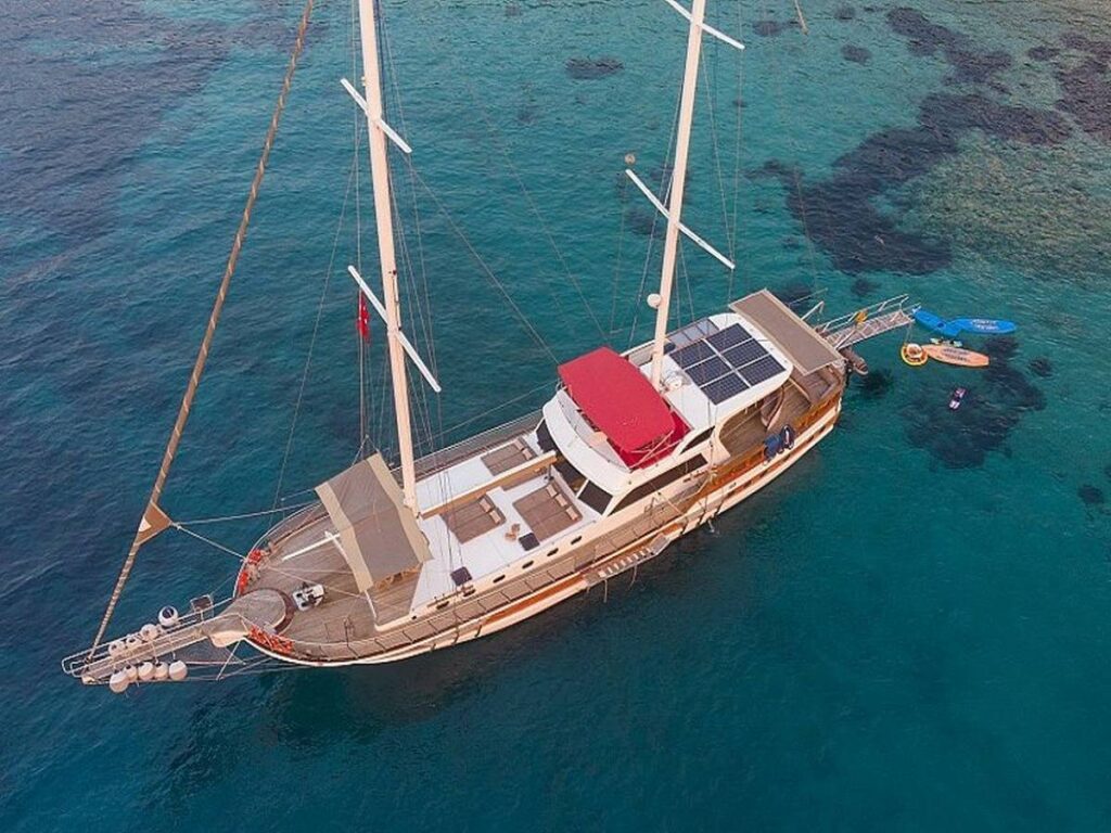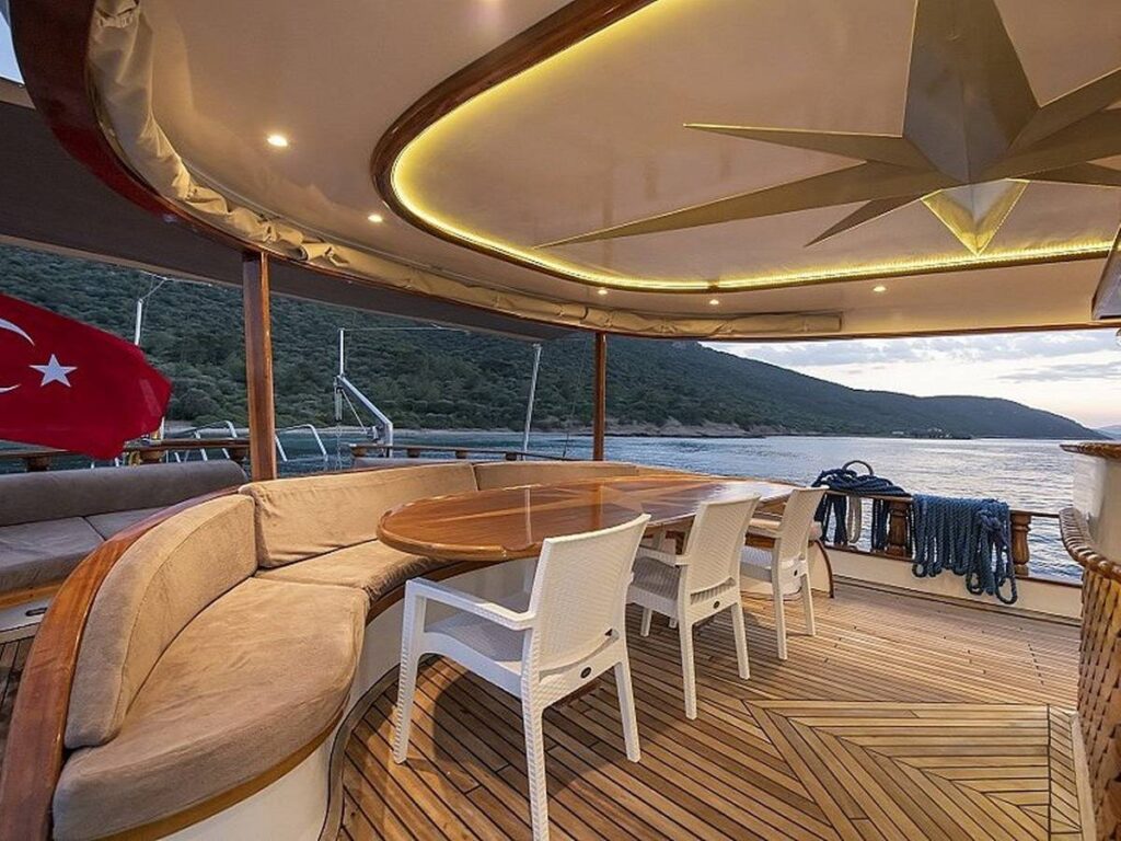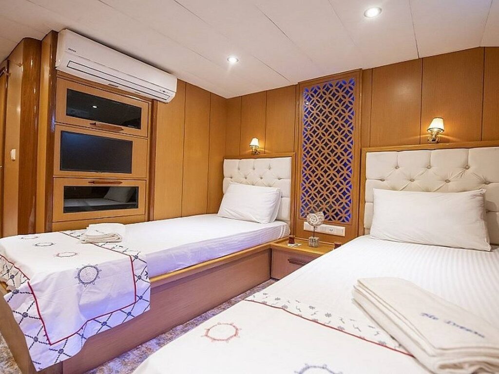 Blue Dream Gulet departs from Marmaris and has a capacity of 8 people with 4 cabins. All cabins of our yacht have air conditioning, shower and toilet. Blue Dream, which also has a Jacuzzi tub in the master cabin, has a beautiful fully equipped kitchen. You can enjoy this special holiday while indoor and outdoor dining tables are set up where you can enjoy the most mouth-watering dishes.