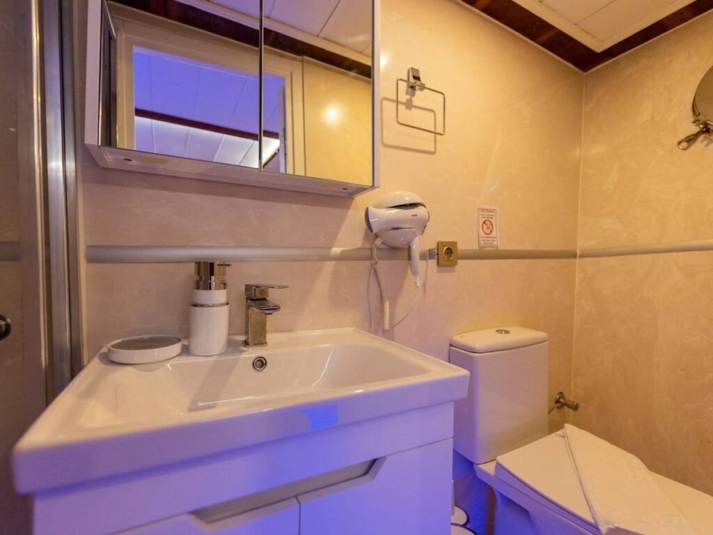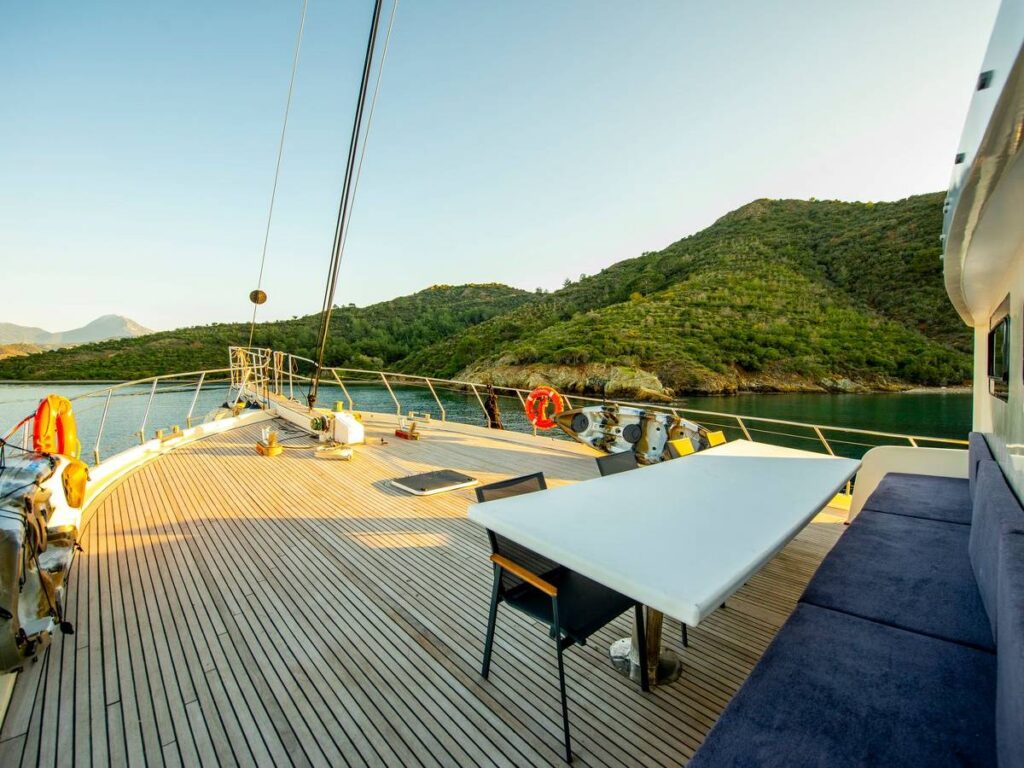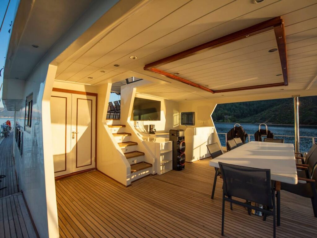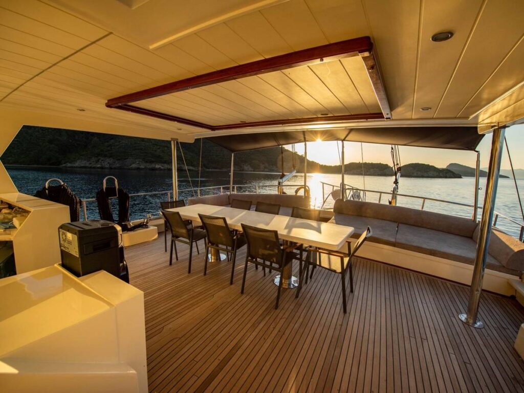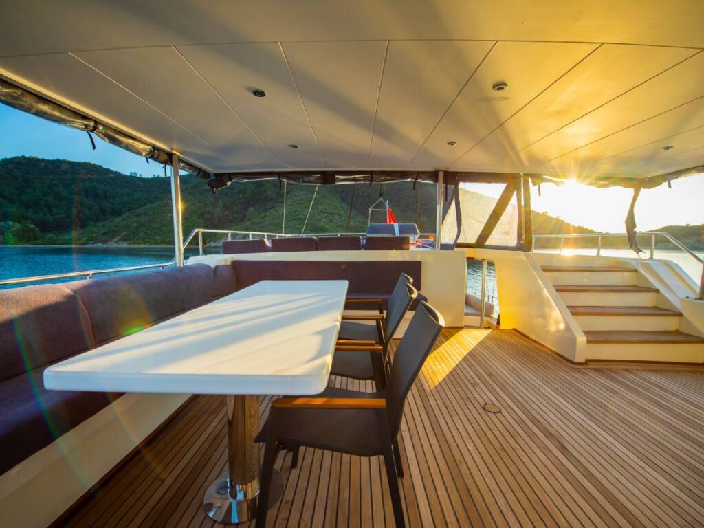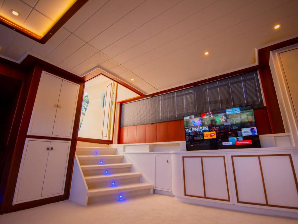With 5 cabins and a capacity of 10 people, you will have the wide and comfortable facilities of a trawler while breathing the air of the gulet. Comfort has been prioritized and opportunities have been expanded. The comfortable cabins have air conditioning, TV and bathrooms with shower cabins, while the decks have areas to enjoy the sun.