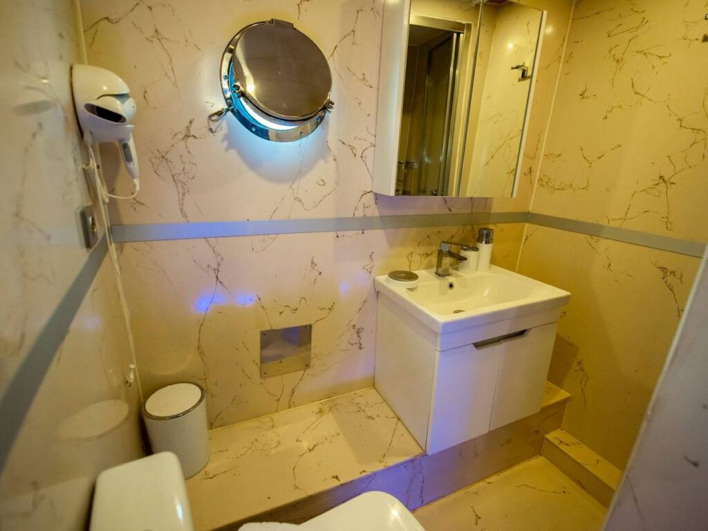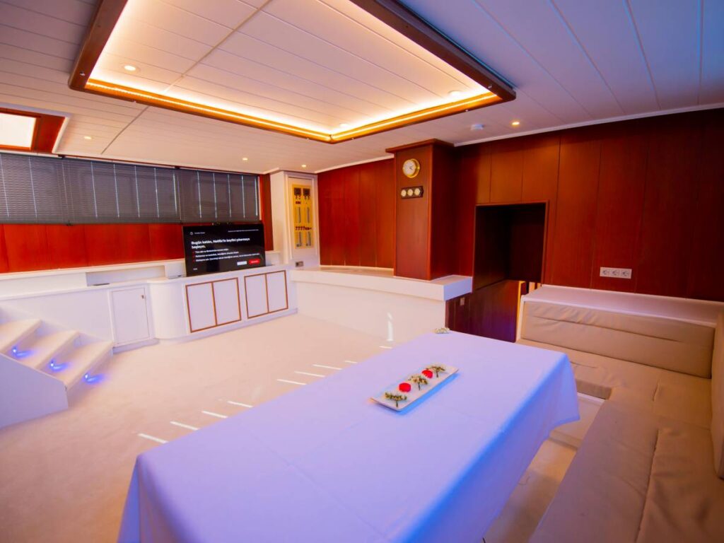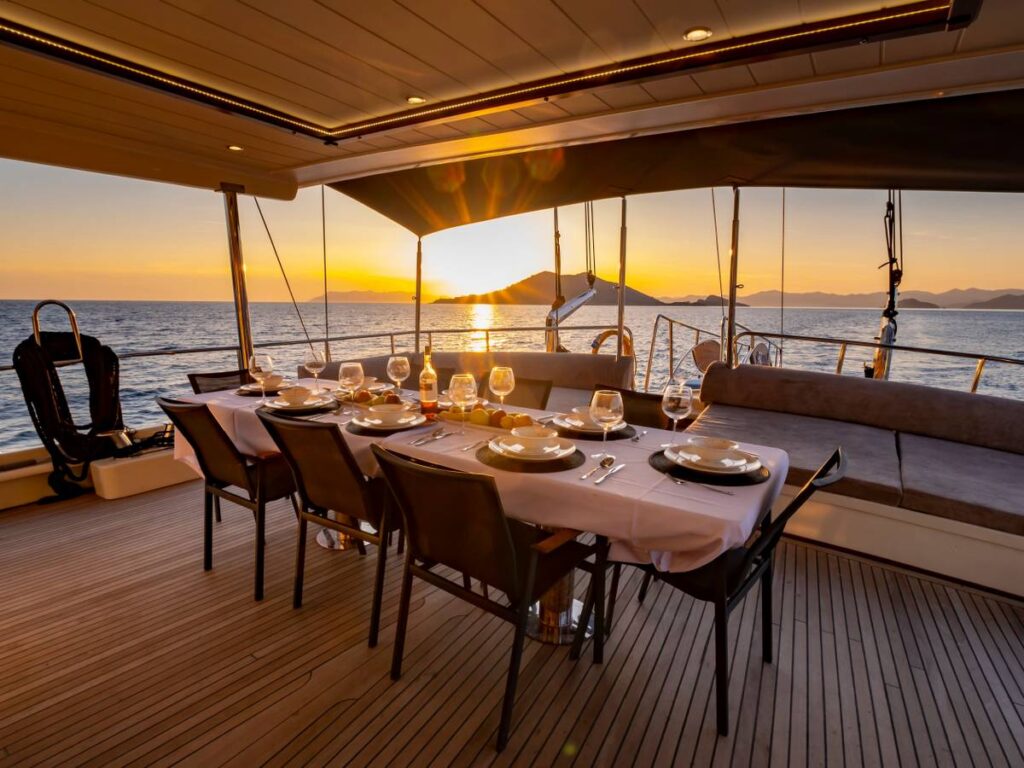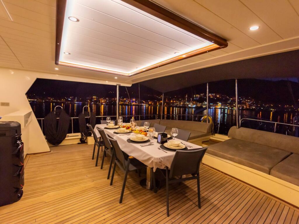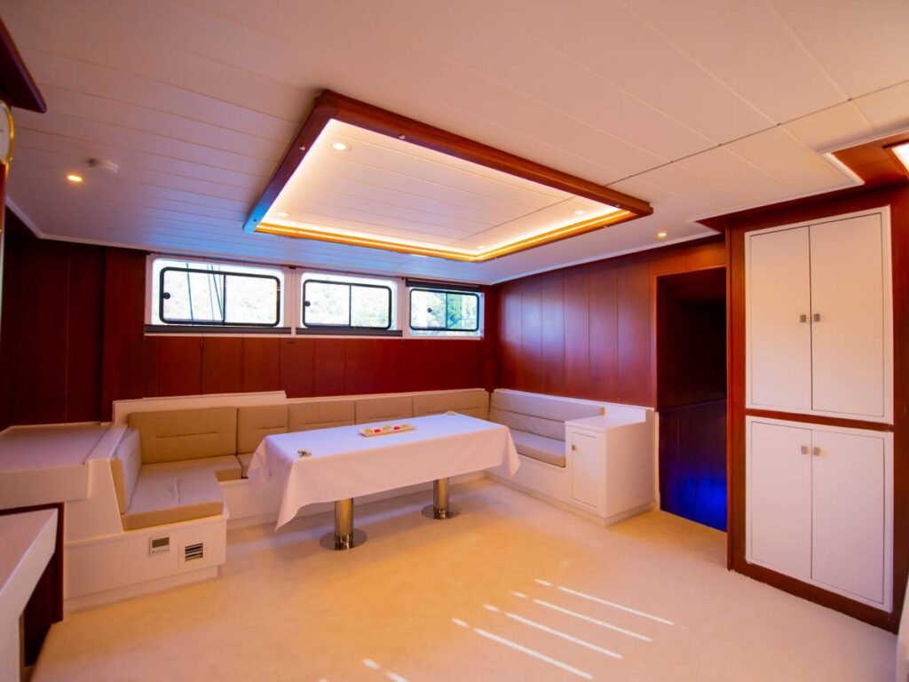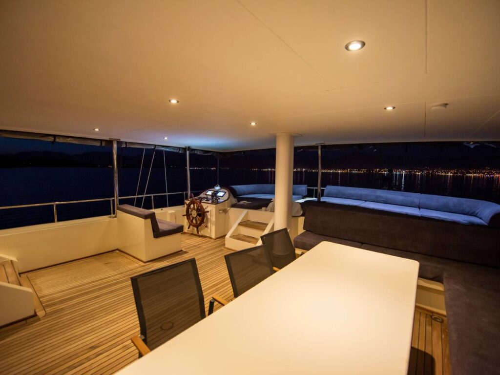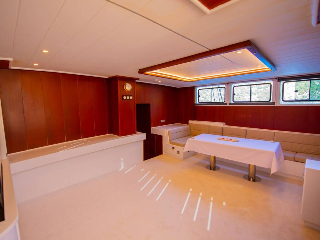 With 5 cabins and a capacity of 10 people, you will have the wide and comfortable facilities of a trawler while breathing the air of the gulet. Comfort has been prioritized and opportunities have been expanded. The comfortable cabins have air conditioning, TV and bathrooms with shower cabins, while the decks have areas to enjoy the sun.