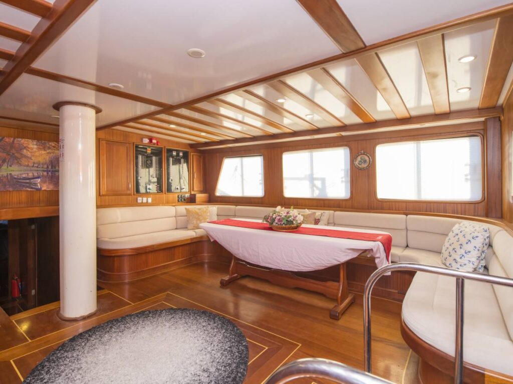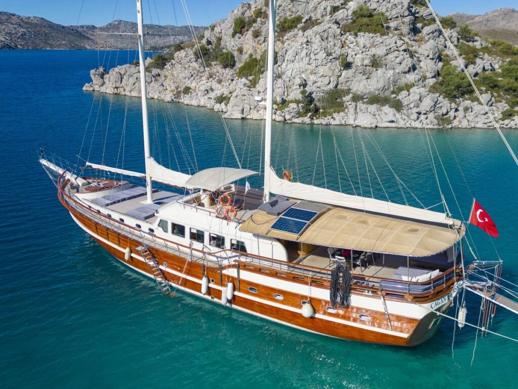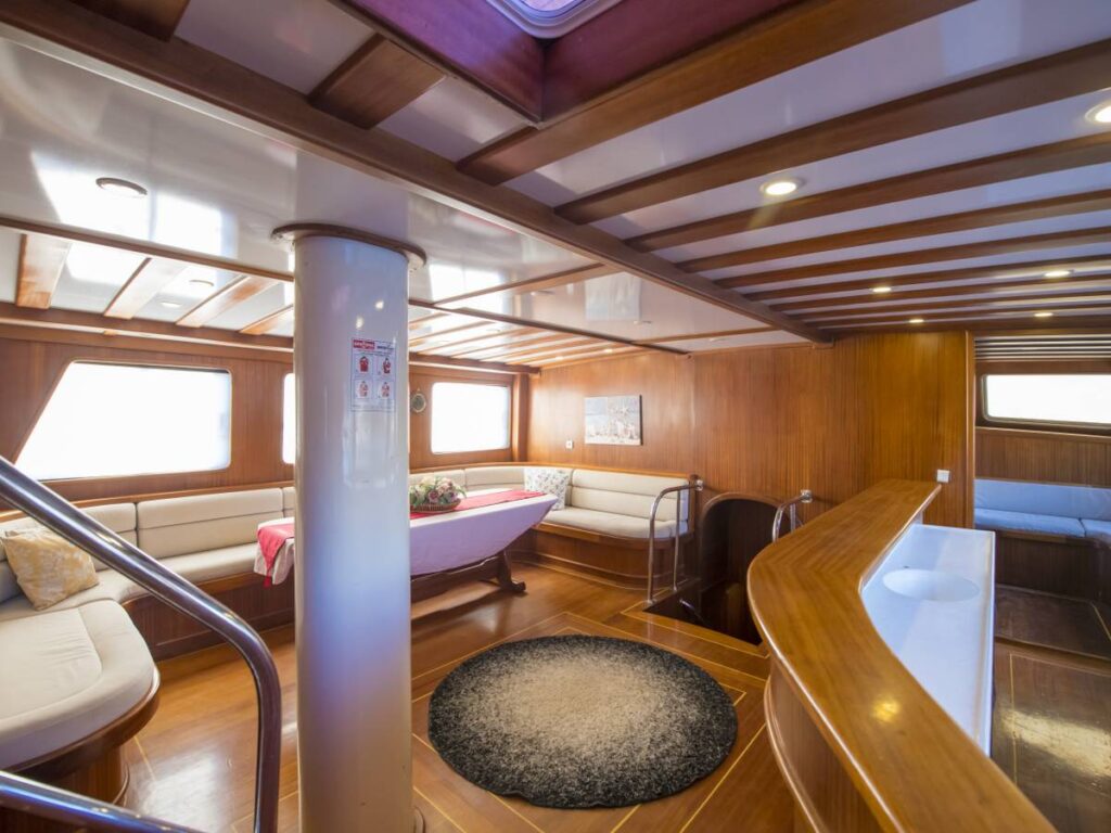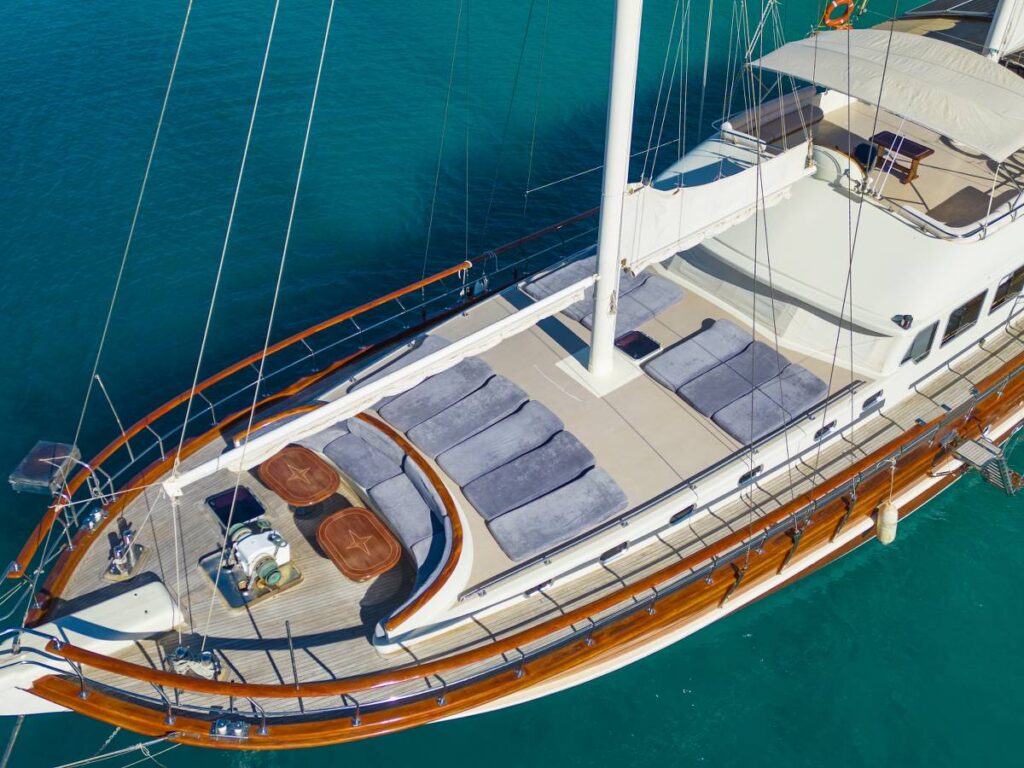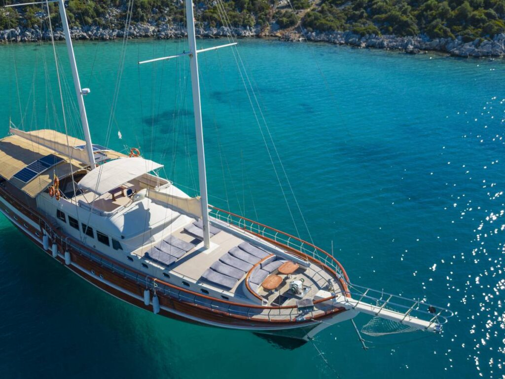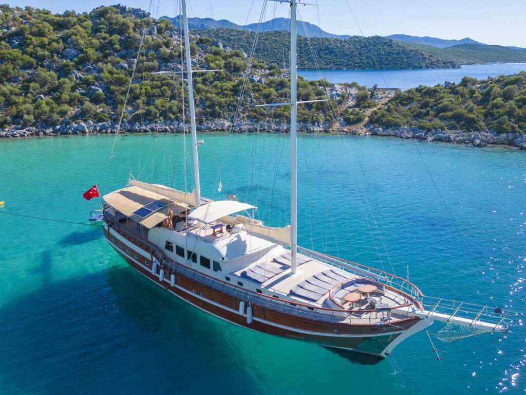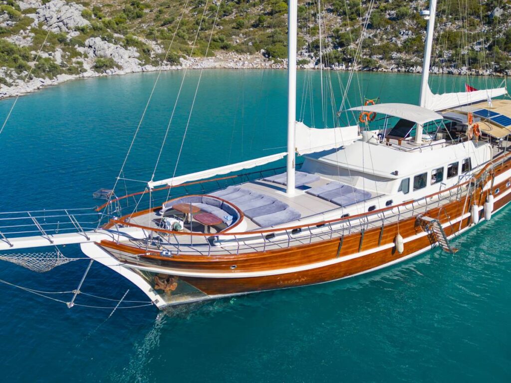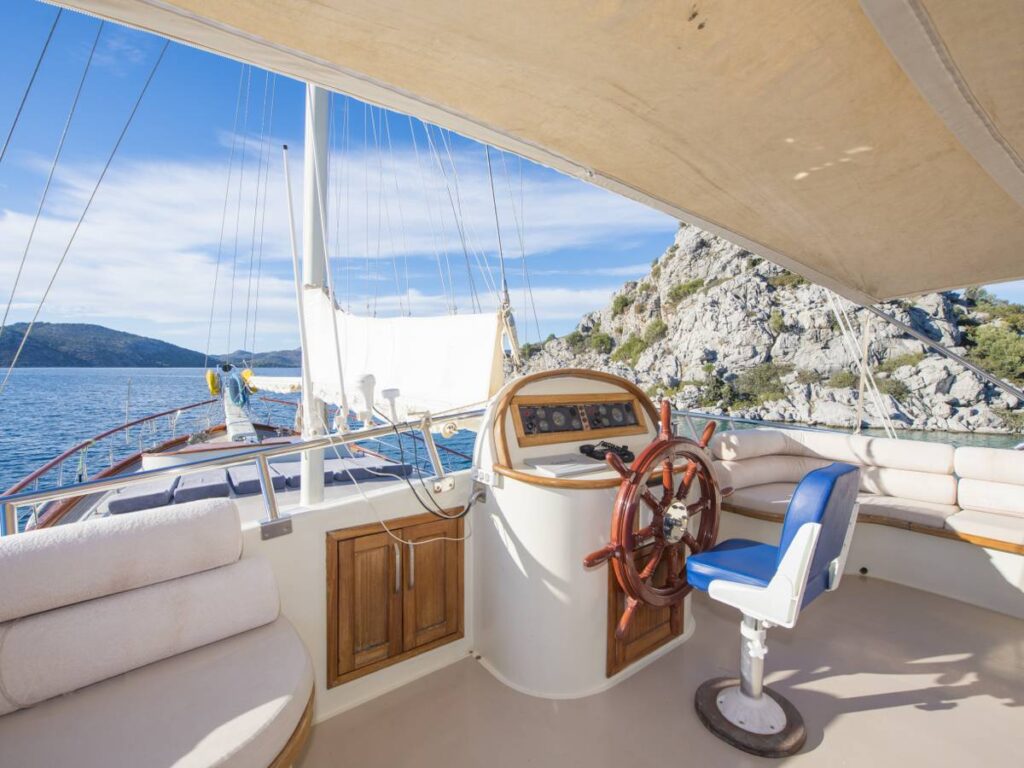It is a very good choice for a blue voyage with a well-equipped kitchen, elegantly set tables, indoor and outdoor dining areas, comfortable living areas and an experienced crew of 4.