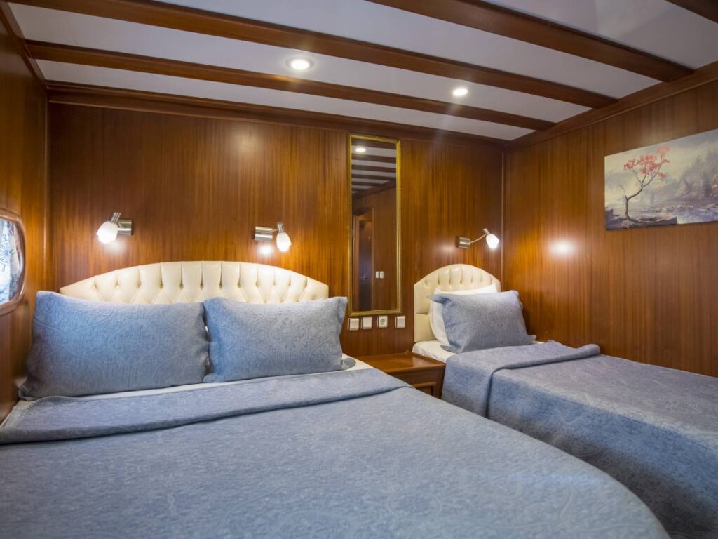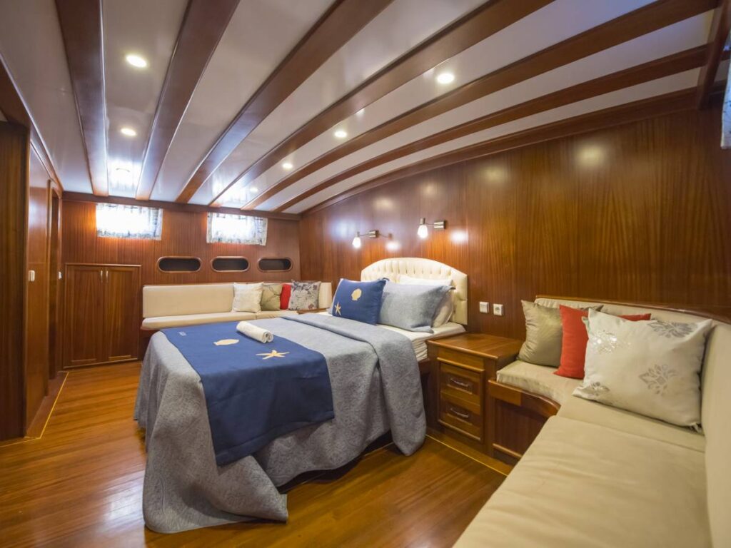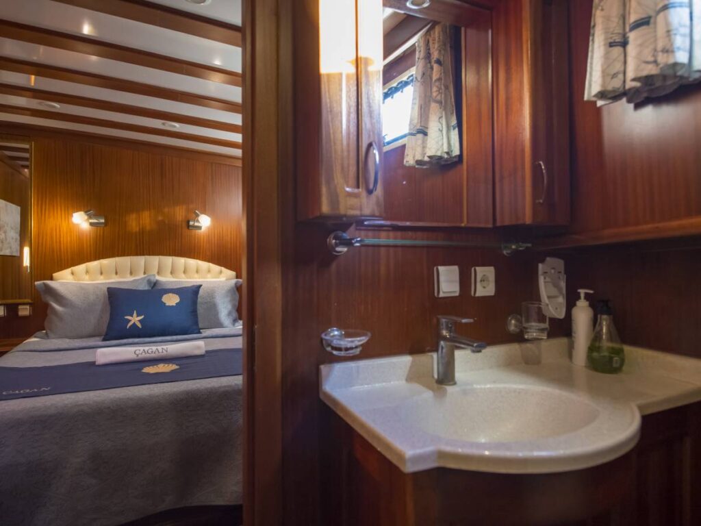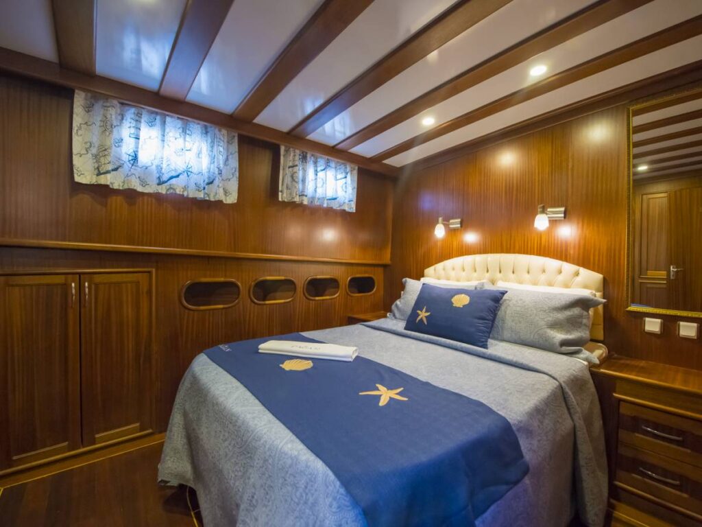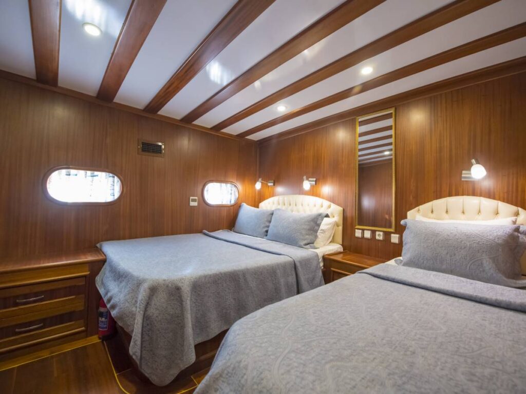 This is definitely one of the best yachts in Marmaris. The gulet has a capacity of 12 people with 6 cabins. All cabins are well maintained, spacious and very comfortable. All rooms have air conditioning, a private shower and toilet.