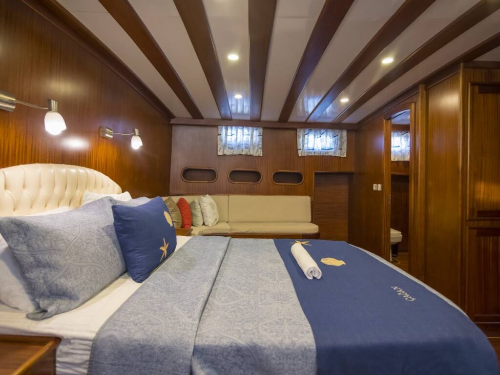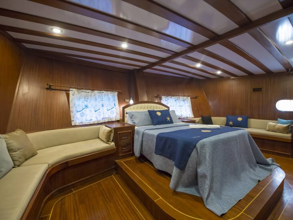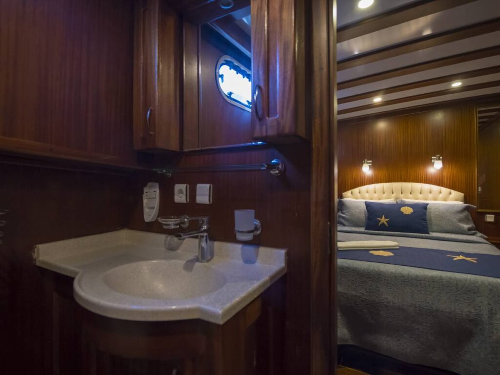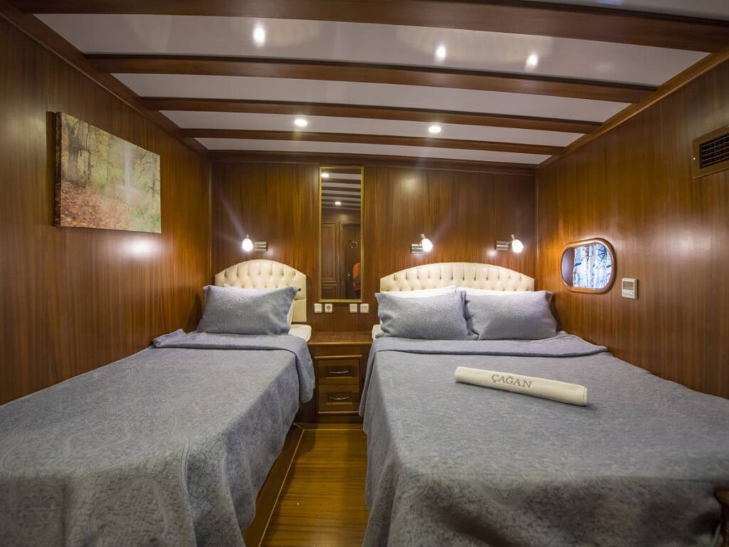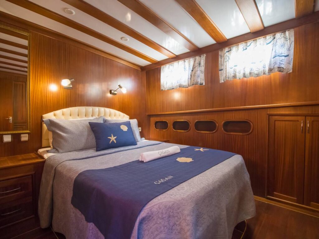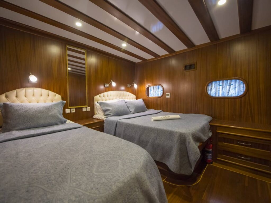 This is definitely one of the best yachts in Marmaris. The gulet has a capacity of 12 people with 6 cabins. All cabins are well maintained, spacious and very comfortable. All rooms have air conditioning, a private shower and toilet.