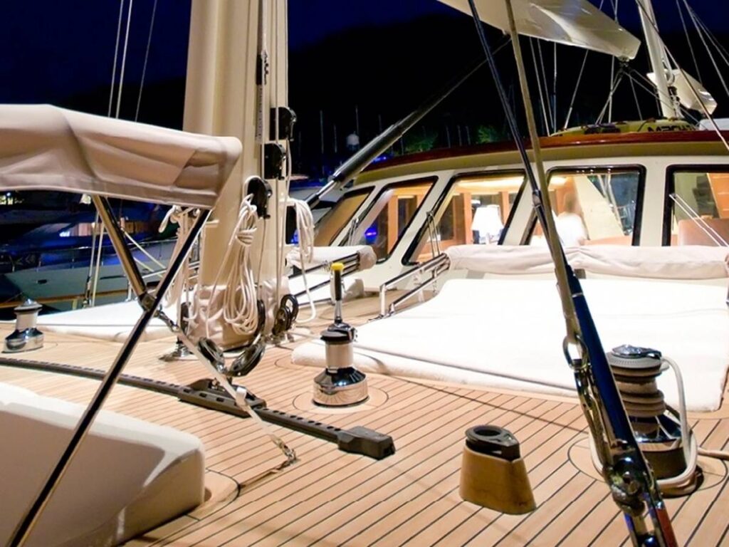 She is indeed a world first because she has all the characteristics of a modern super yacht with a traditional hull design that gives a classically elegant appearance. Daima’s hi-tech rigging and sails ensure exciting and memorable passages under sail, while her twin engines will also take her quickly to the next port.