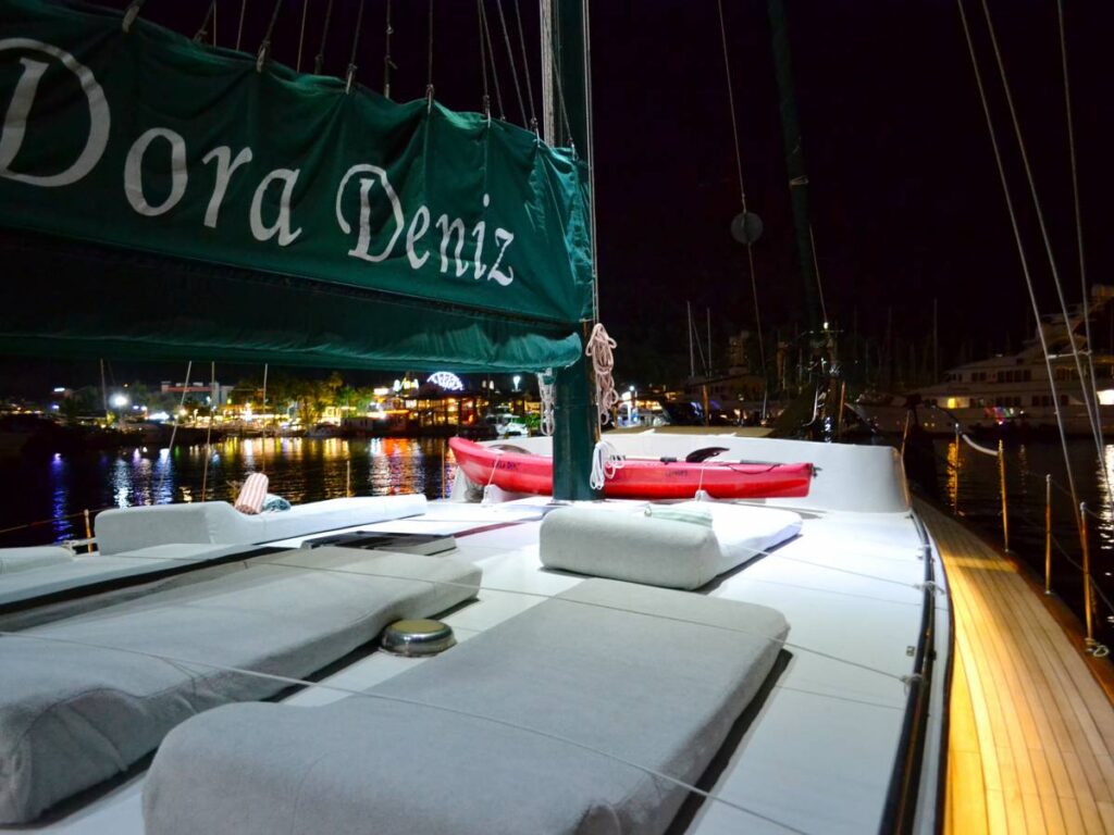 Gulet Dora Deniz is 19 meters long and was completely renovated in 2024. This is a small gulet and ideal for groups no larger than 6 people.