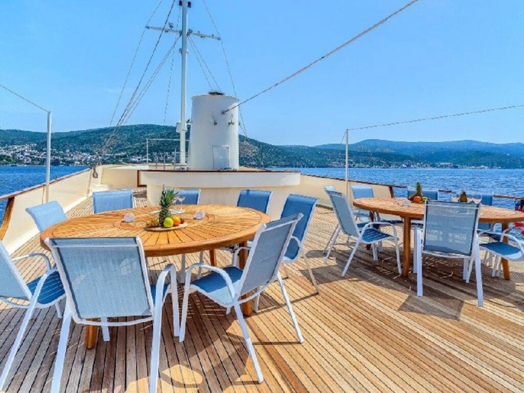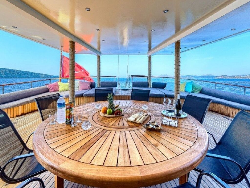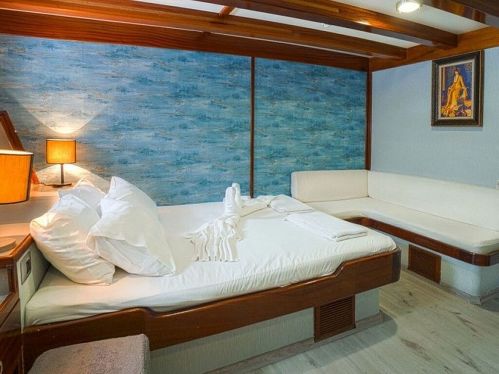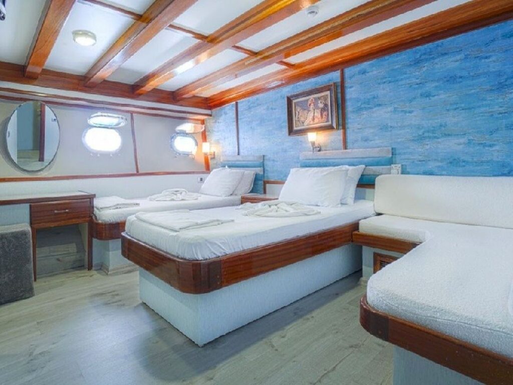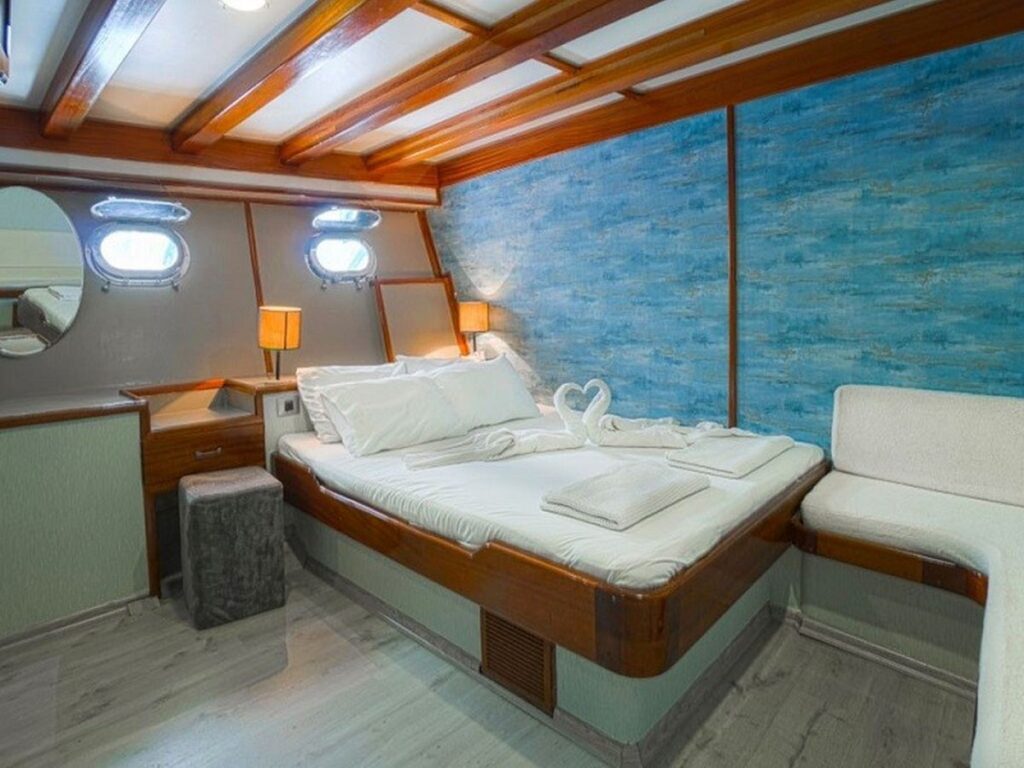 Elara 1 is a very high-quality gulet of 44 meters long and completely renovated in 2019. There are modern and spacious cabins, specially designed with a hall and deck. It accommodates 24 guests in 6 Double, 6 Twin Cabins, each has its own shower and toilet. All cabins are air-conditioned. This yacht which is equipped with all conveniences is very suitable for large groups.