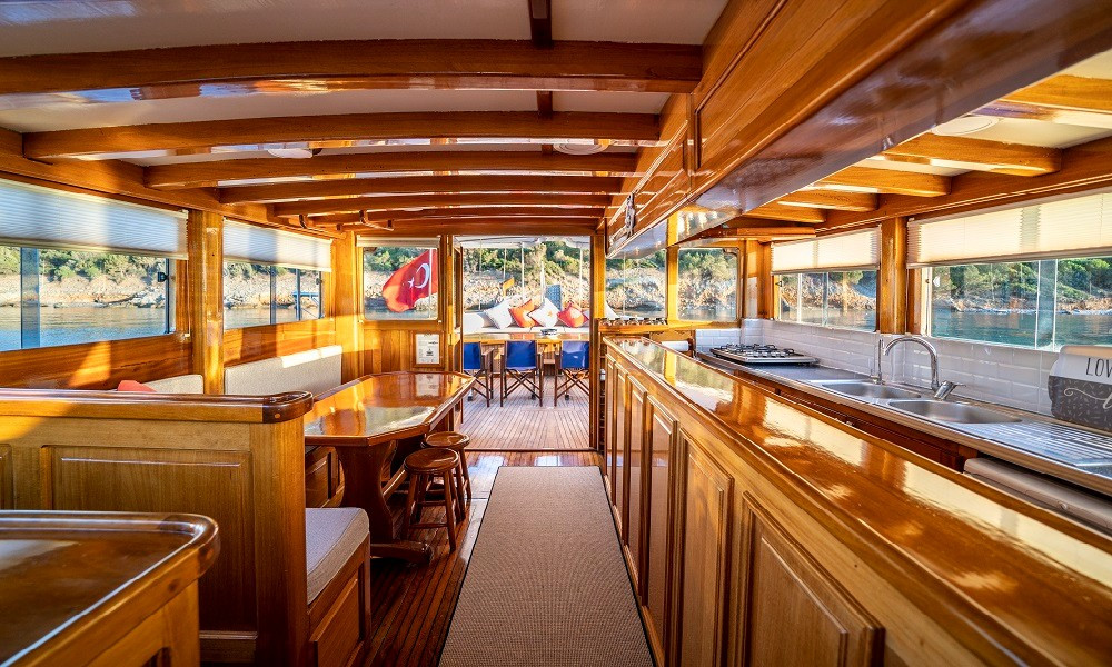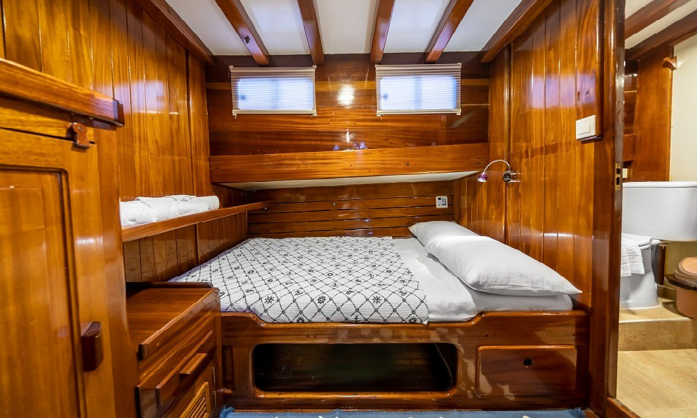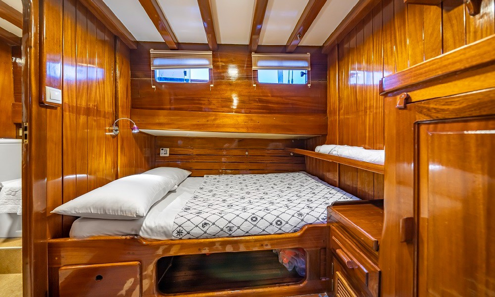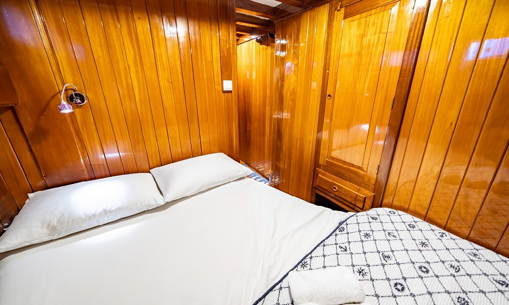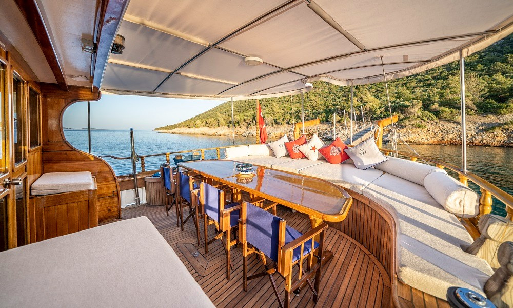 The carefully selected crew of 3 people is available day and night and thanks to this team your holiday will be an unforgettable experience. The cook of this small but very elegant yacht prepares the most mouth-watering dishes that you can enjoy al fresco. This fantastic gulet offers you the opportunity to make a blue cruise for an affordable budget.