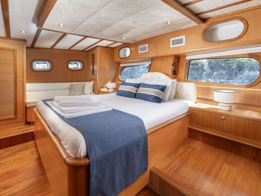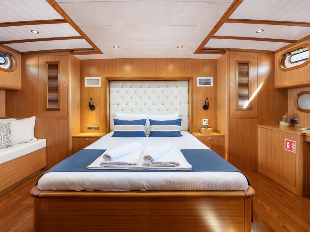 Gulet Gozdem The One – Gözdem The One is a 26m ketch designed for Blue Cruise holidays and launched in 2022 in Bodrum. Gozdem The One has 4 sleek and modern cabins and are all equipped with all modern conveniences that can be expected from a gulet like this. She also features a quiet outdoor terrace for sunbathing. The crew of Gözdem The One will give you a friendly welcome and make your cruise unforgettable.