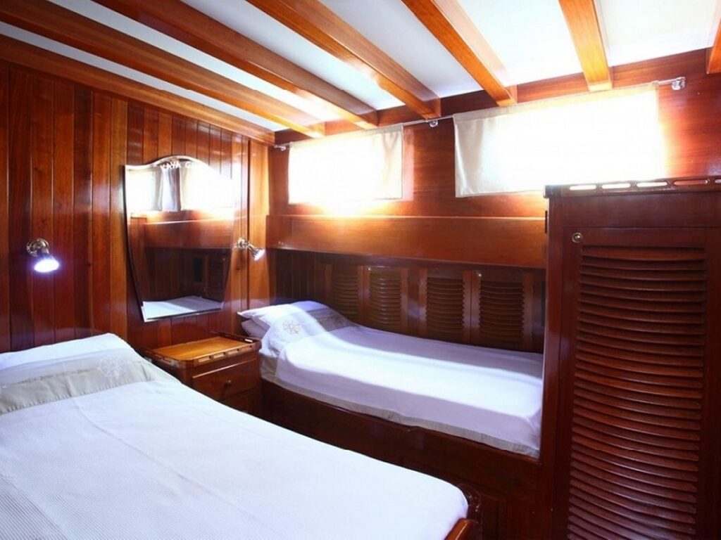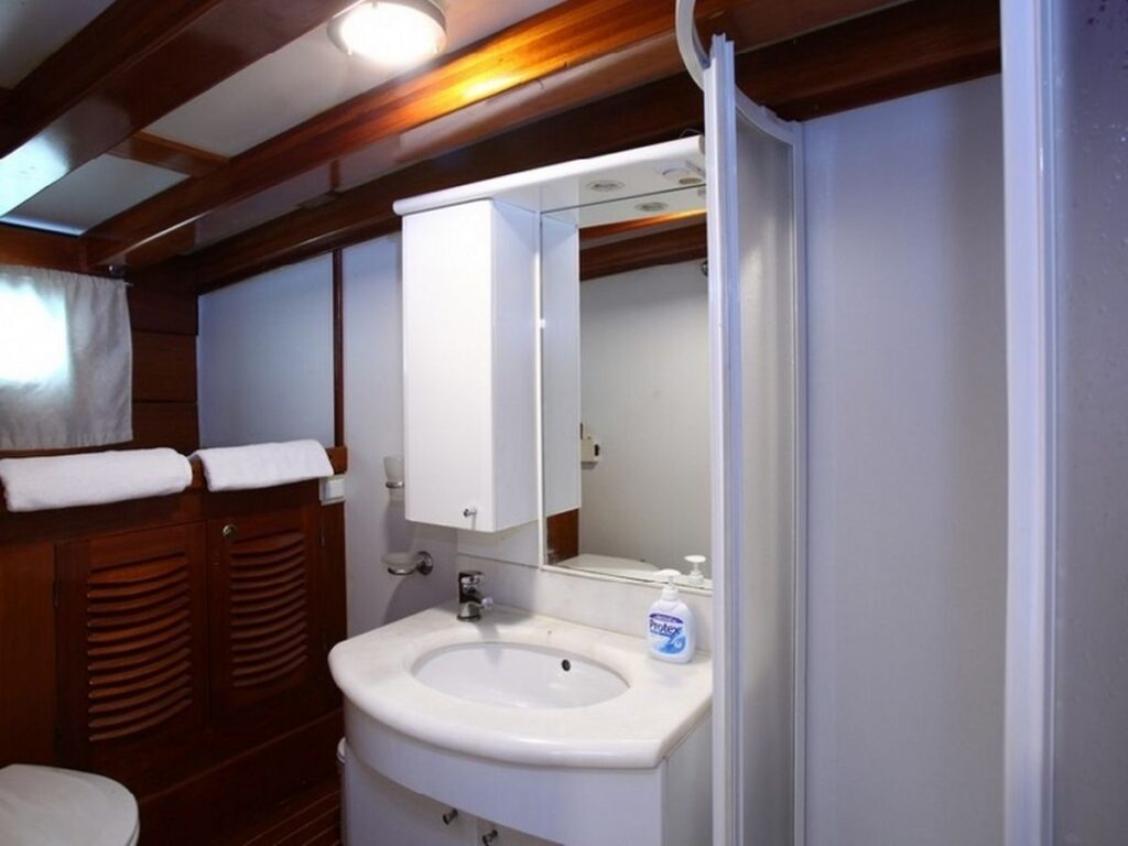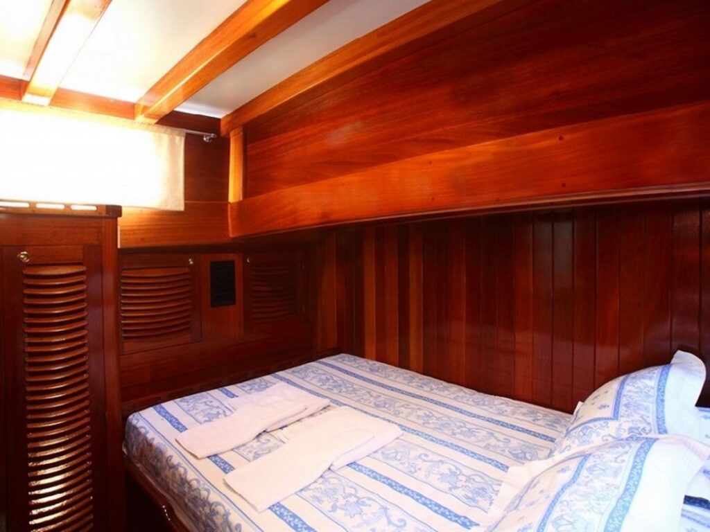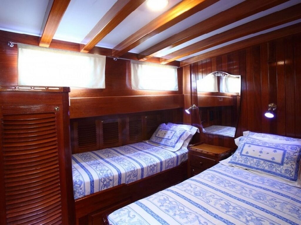 Gulet Kaya Guneri 3 is 29 meters long and built in 2001, but completely renovated in 2011. It has 4 double, 4 twin cabins and therefore offers space for 16 guests, all in air-conditioned cabins. Each cabin has a separate toilet and shower.