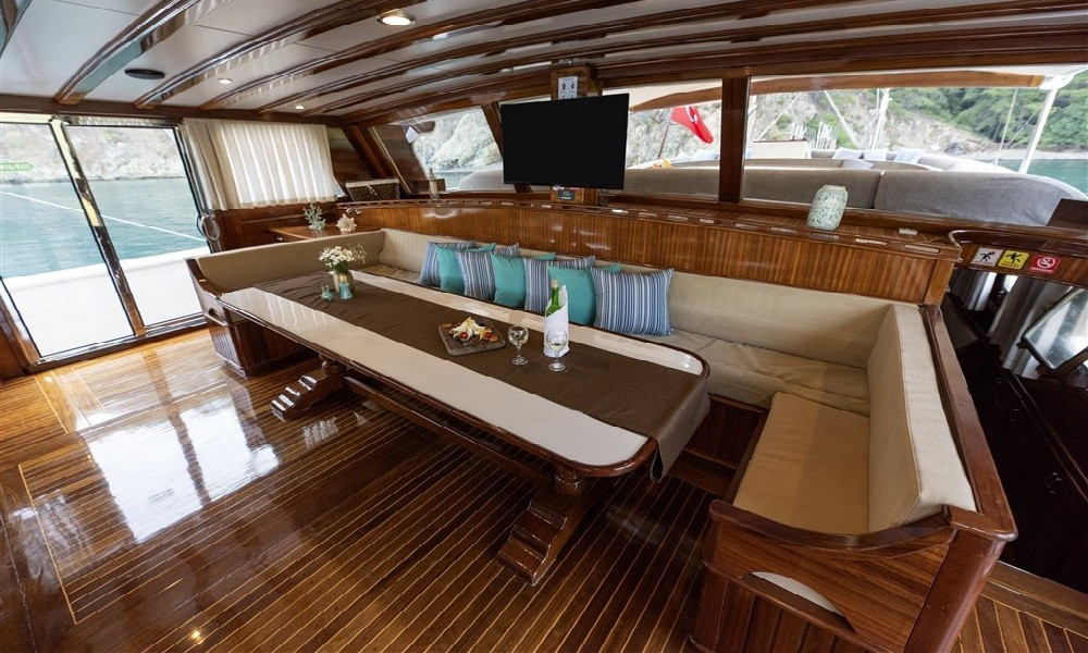 You always have the chance to create a special space for yourself with the seating areas, indoor and outdoor dining areas and large sunbathing areas on the fore and aft decks. You can give your holiday an extra privilege with the Jacuzzi on the fore deck.