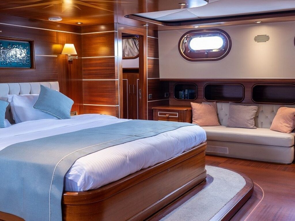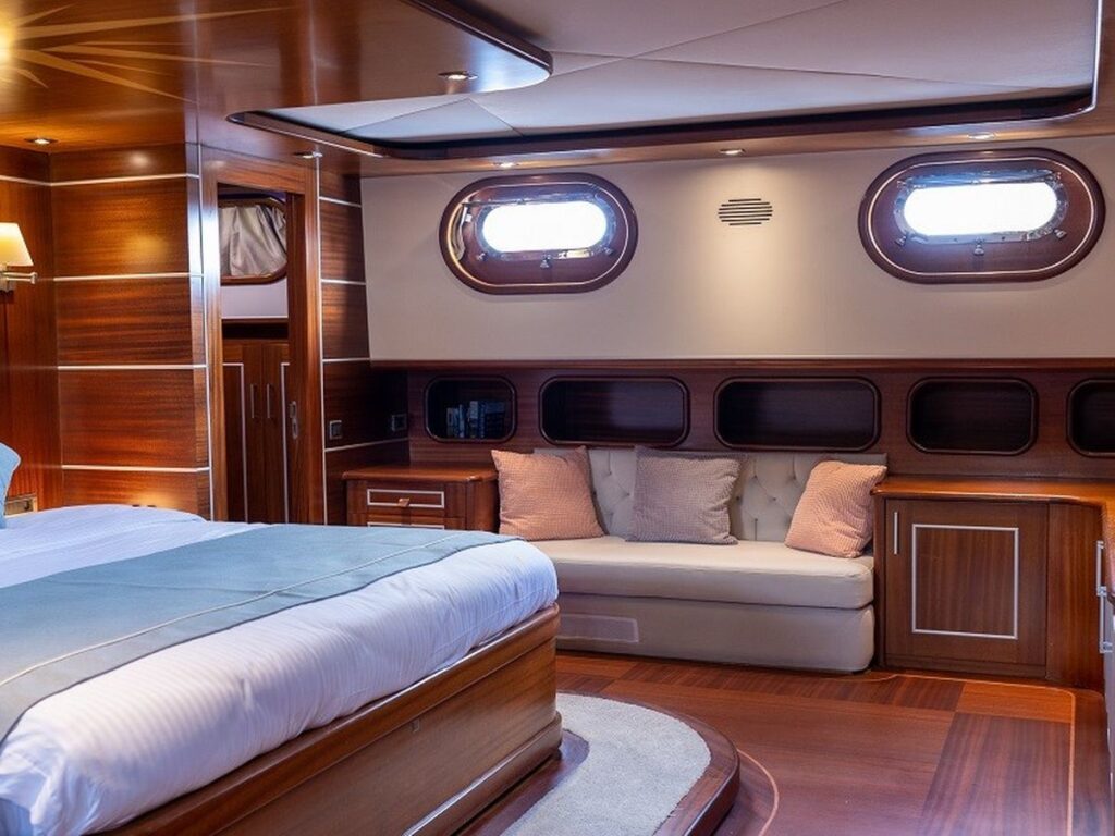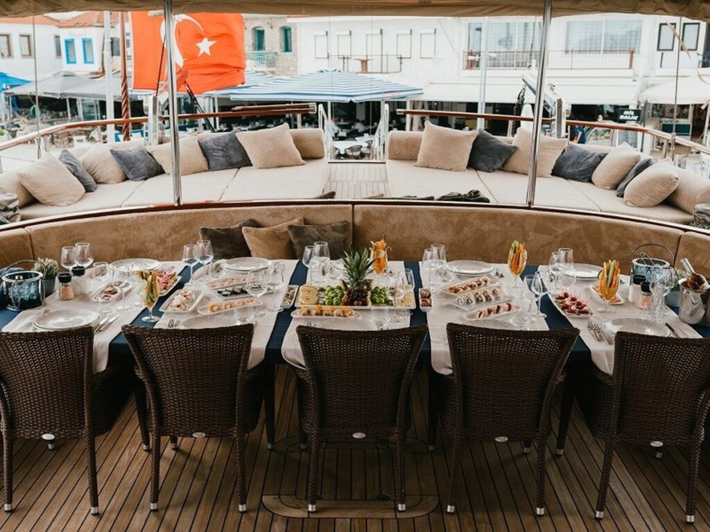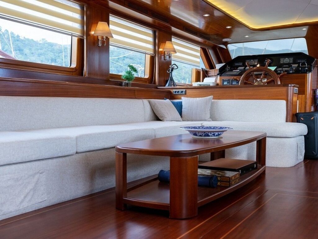 The huge size and the beautiful finish, the spacious cabins, the 6-headed professional crew, it makes this gulet simply perfect. The beautiful spacious decks, a wonderfully comfortable living room where you can retreat and also on the decks are plenty of places where you can perfectly enjoy yourself with a good book and a glass of wine.