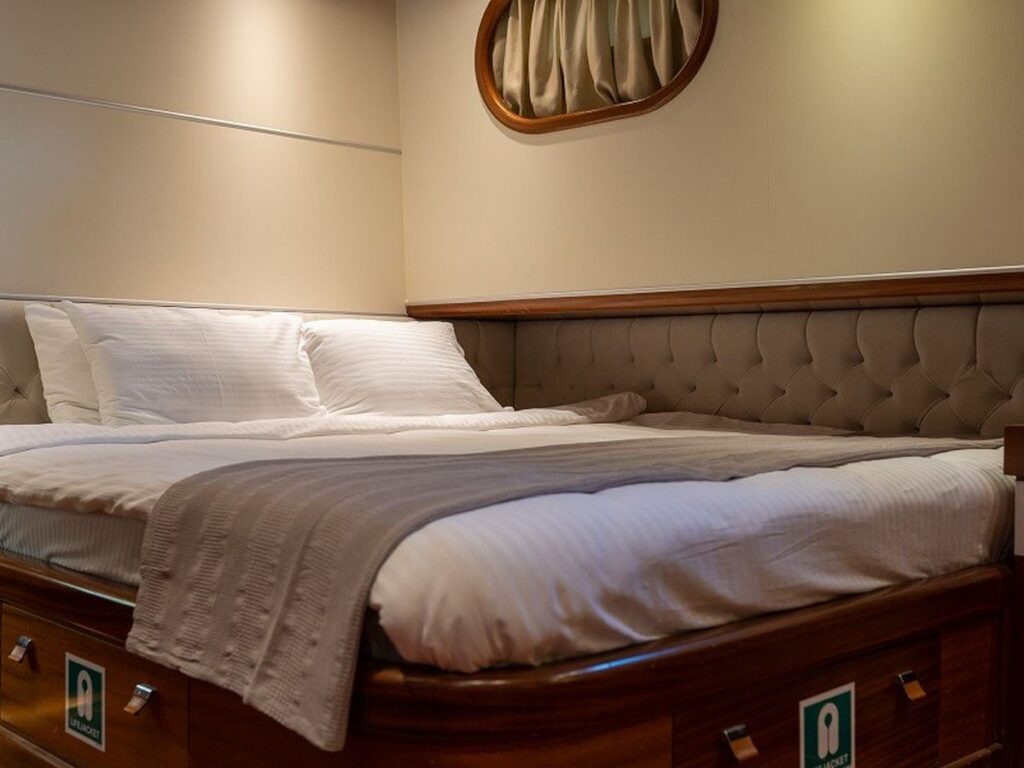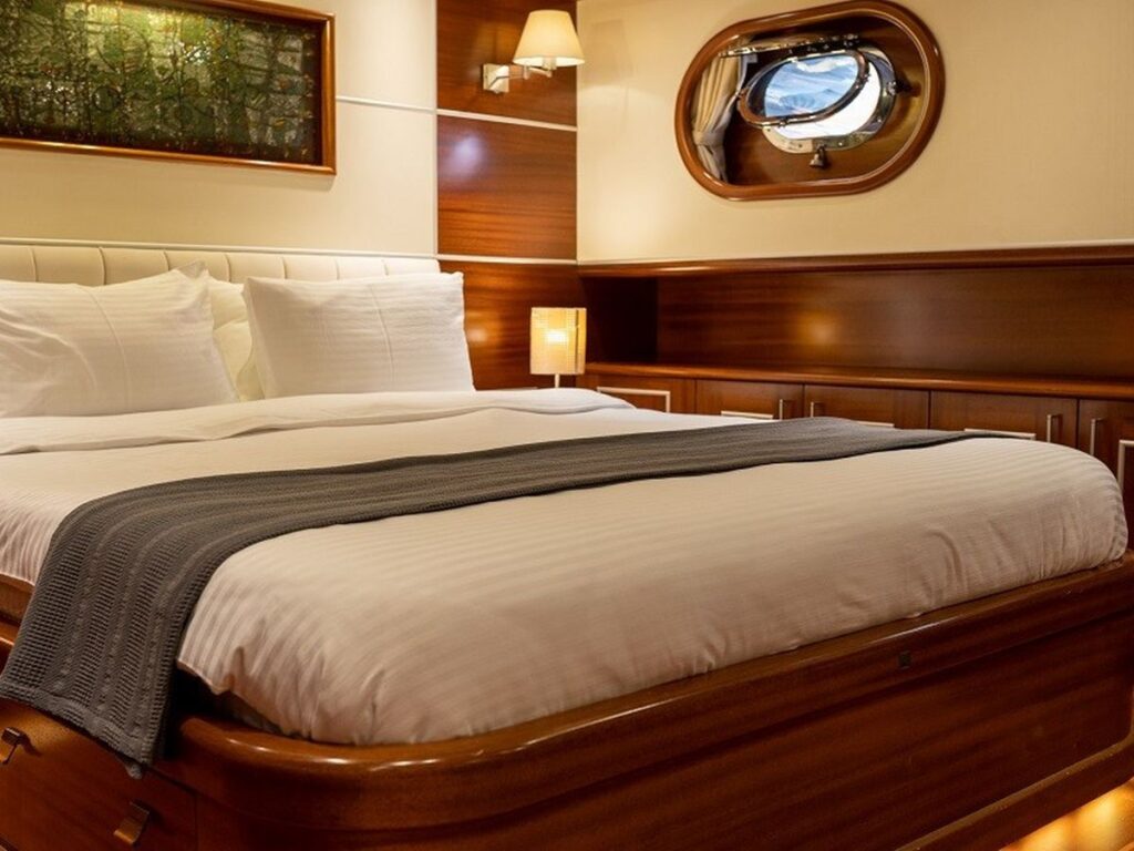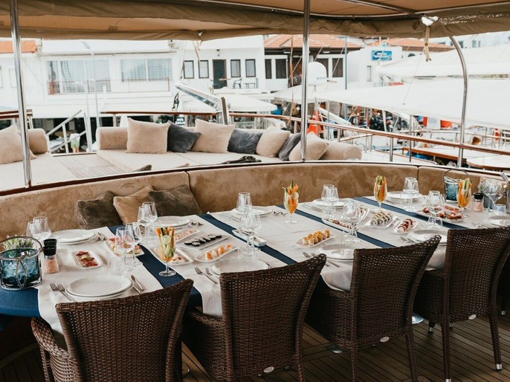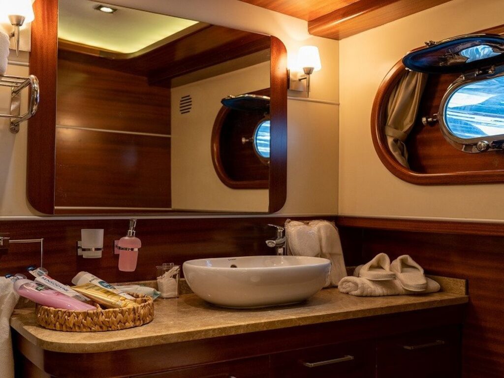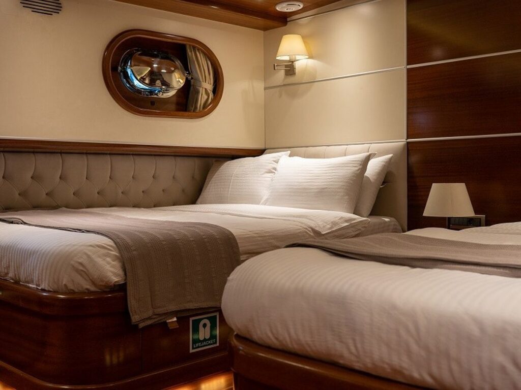 The huge size and the beautiful finish, the spacious cabins, the 6-headed professional crew, it makes this gulet simply perfect. The beautiful spacious decks, a wonderfully comfortable living room where you can retreat and also on the decks are plenty of places where you can perfectly enjoy yourself with a good book and a glass of wine.