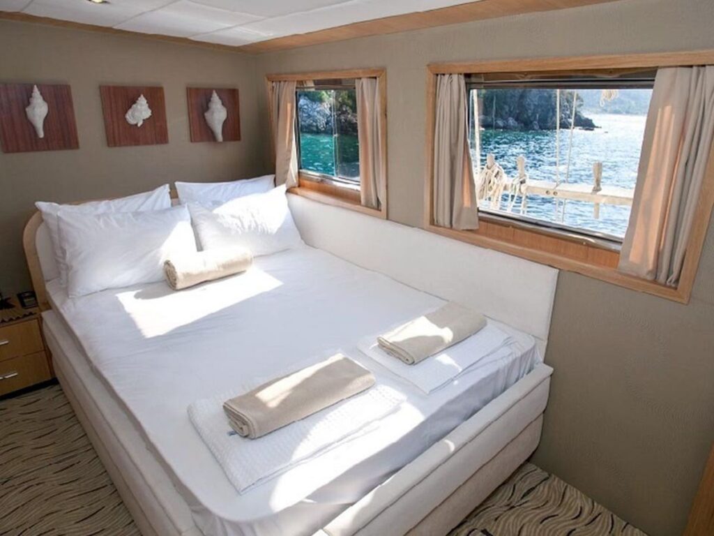 Memo is a high-quality Gulet, 30 meters long and completely renovated in 2025. All cabins are spacious and nicely furnished. This gulet can accommodate up to 16 guests in 2 Master, 2 Double, and 4 twin cabins. Each cabin has its shower and toilet, as well as air conditioning.