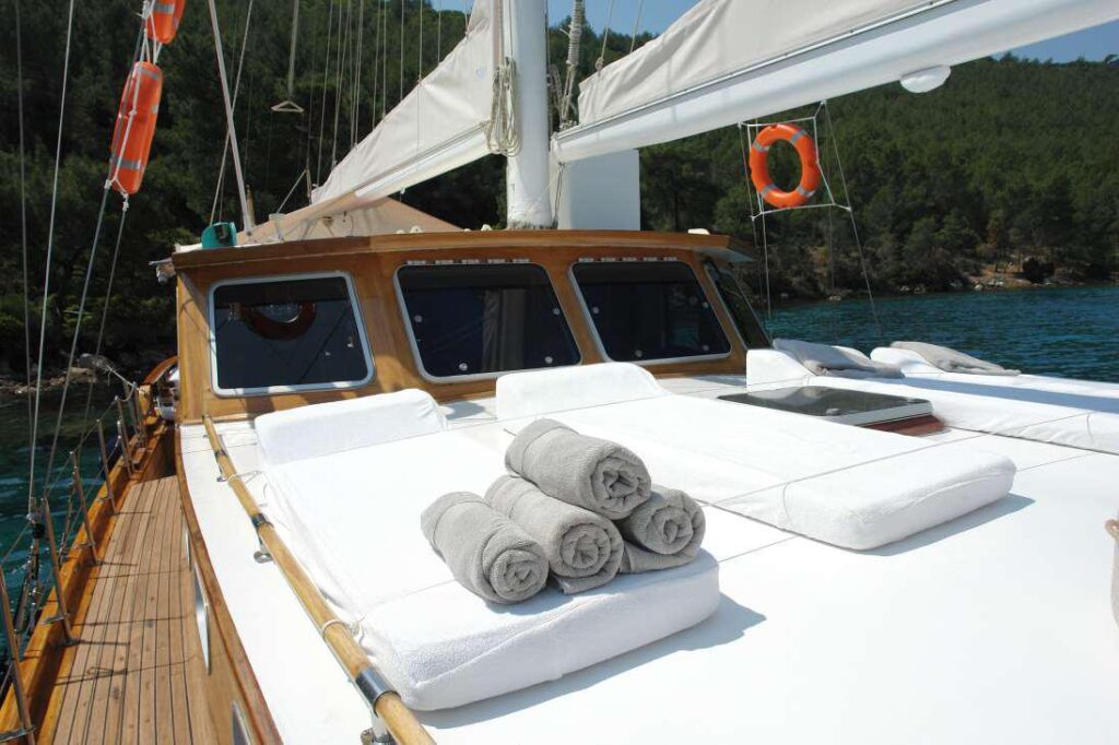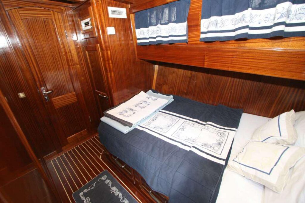 Mira Mare is a 20 mt gulet and built in 2007 and then completely renovated in 2020. This beautiful, comfortable gulet has 4 cabins and can accommodate up to 8 people. All cabins have their own shower, toilet and air conditioning.