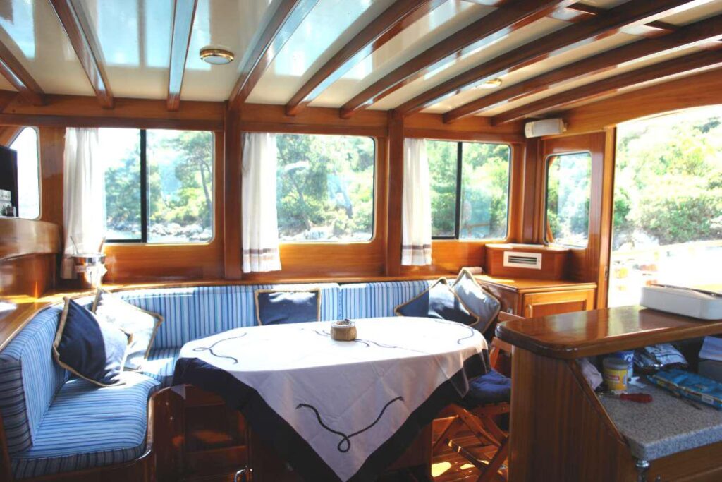 There are plenty of seats and berths on board and the most delicious dishes prepared by the cook appear from the galley. Mira mare has a crew of 3 who will take good care of you during this unforgettable blue cruise.