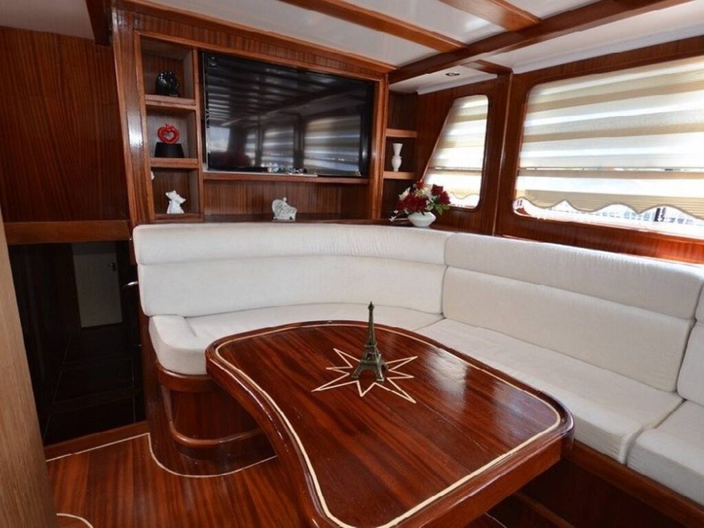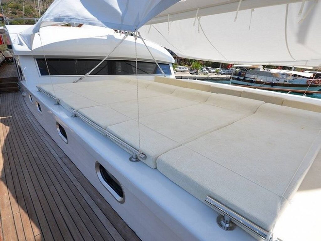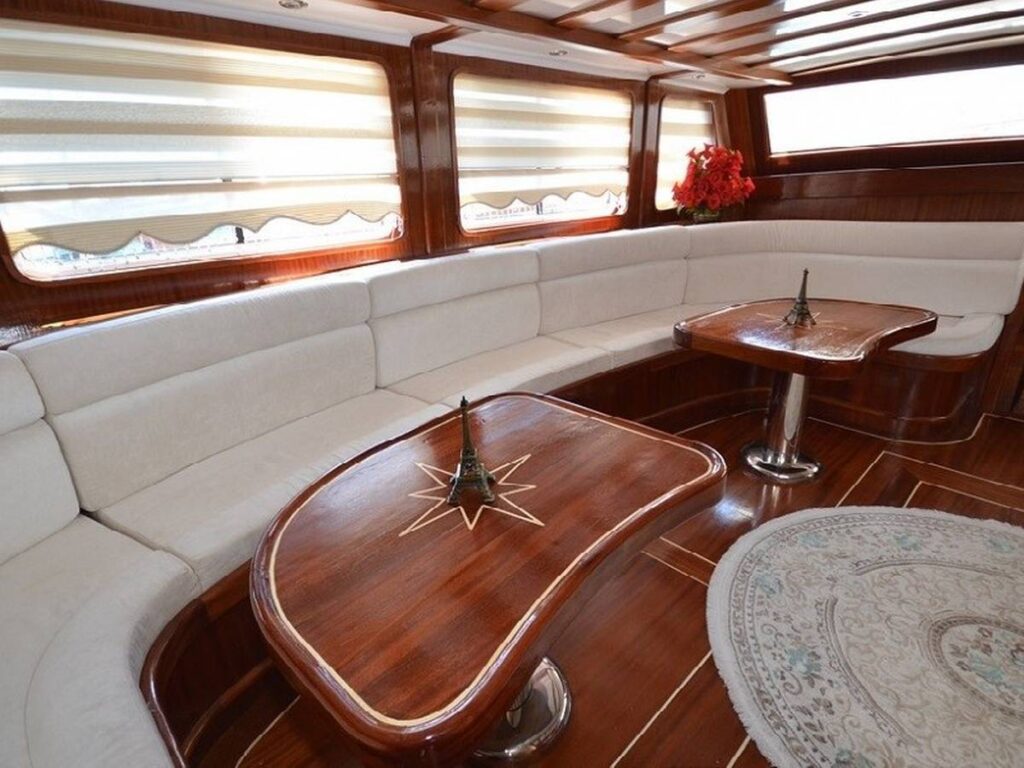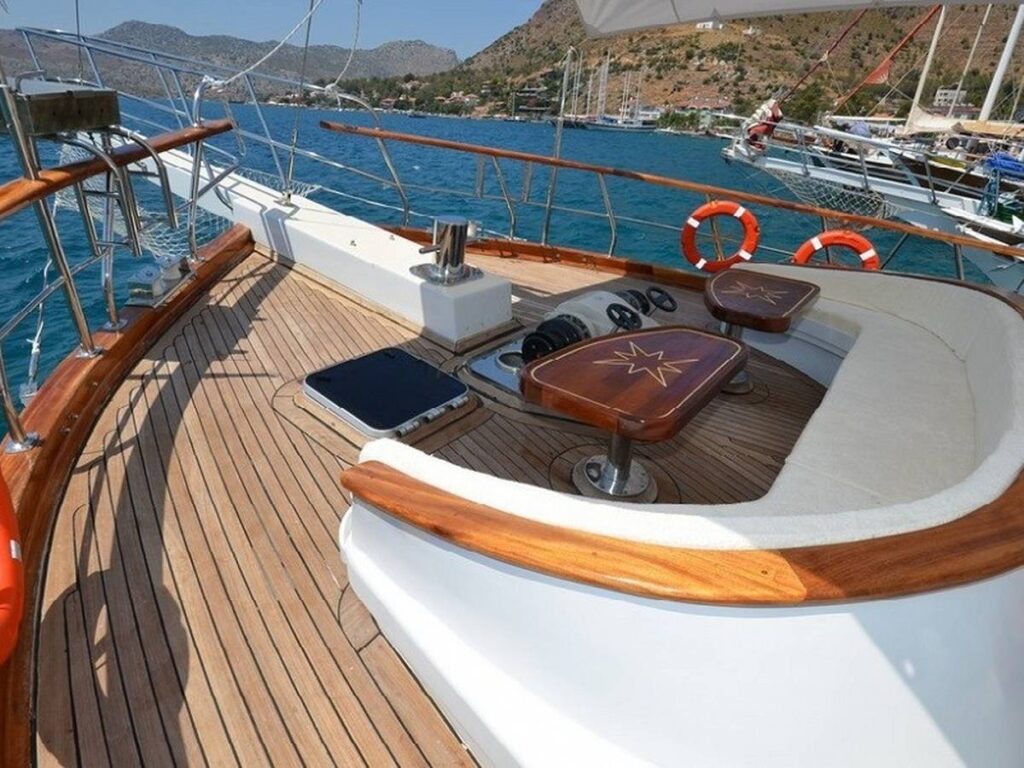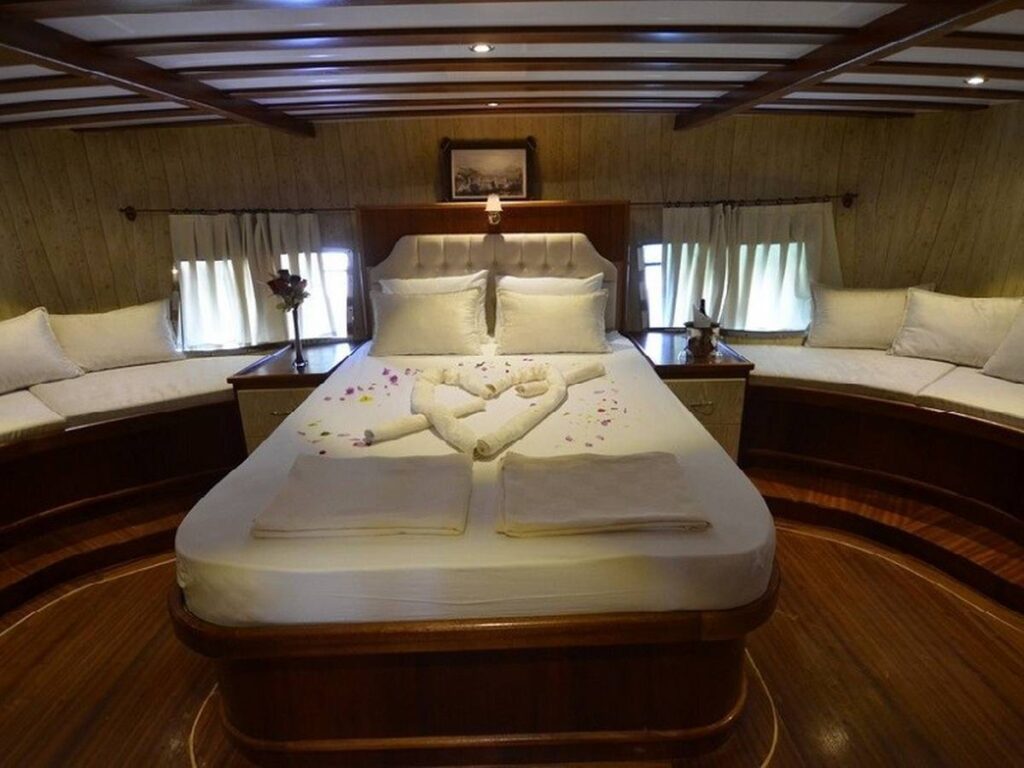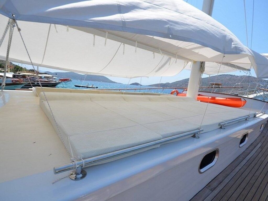 This 28 meter gulet has a capacity of 12 guests with 6 cabins. The gulet has spacious dining and living areas and an upstairs flybridge. All cabins and saloon are air-conditioned. In addition, all cabins have their own shower and toilet.