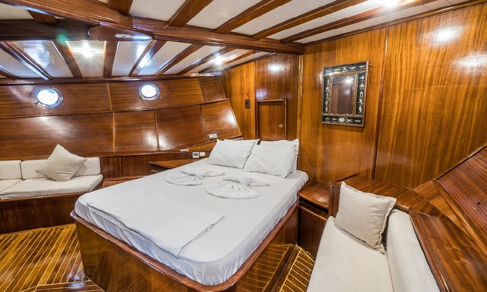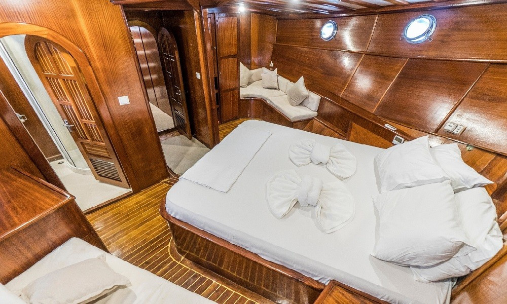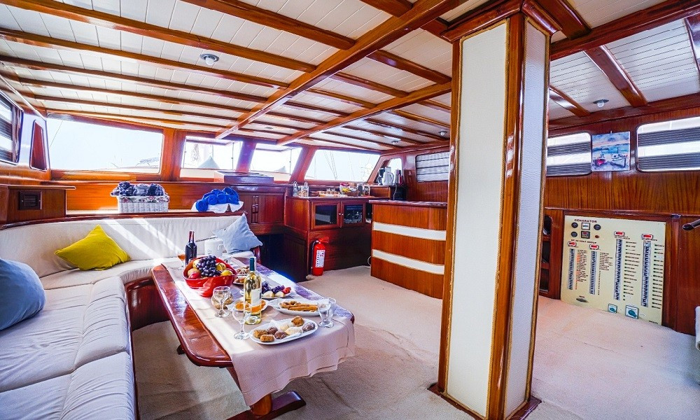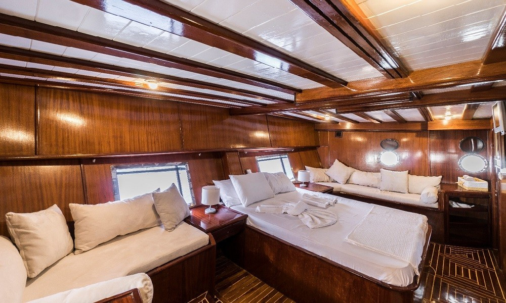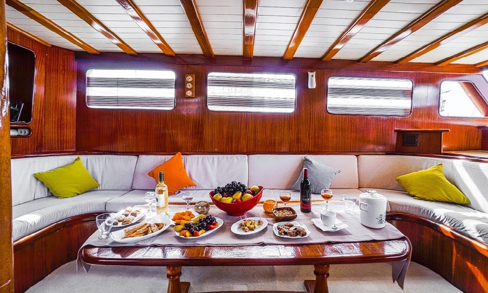 The gulet, which has a capacity of 8 people with its 4 cabins, is very stylishly designed. It is designed for the comfort of guests, with indoor and outdoor dining areas, comfortable decks and elegantly appointed staterooms. Gulet Optimist has a good chef who will spoil you with mouth-watering dishes.