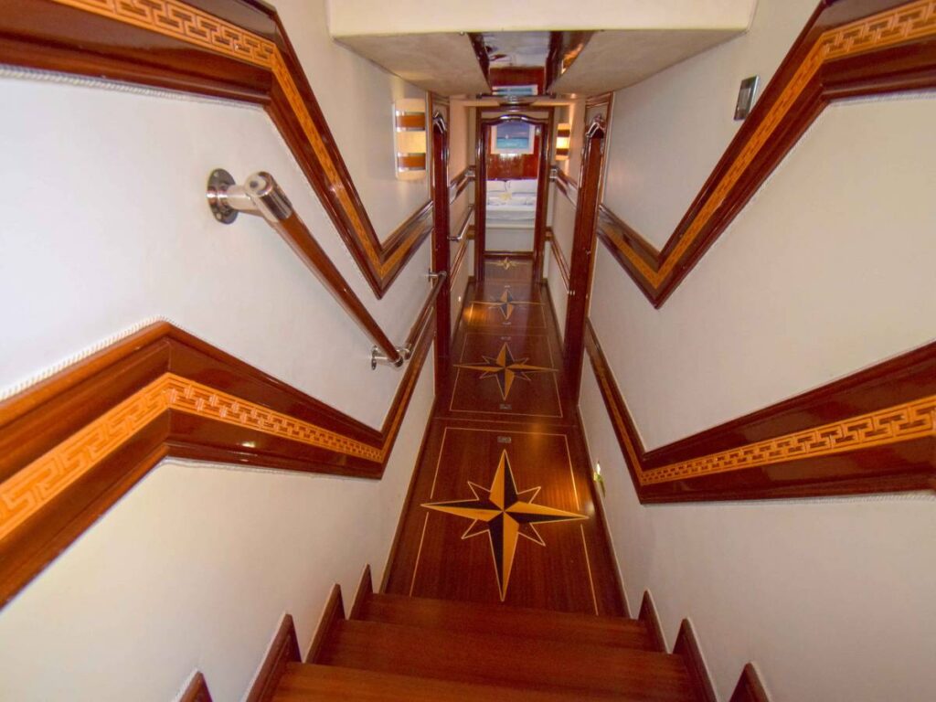 The interior of the Gulet Perla Del Mar 2 is tasteful and the interior exudes luxury. There is a TV, DVD and music system in the salon where you can enjoy your own time. This unique gulet has a Jacuzzi on deck and gives its guests more than a joyful holiday.