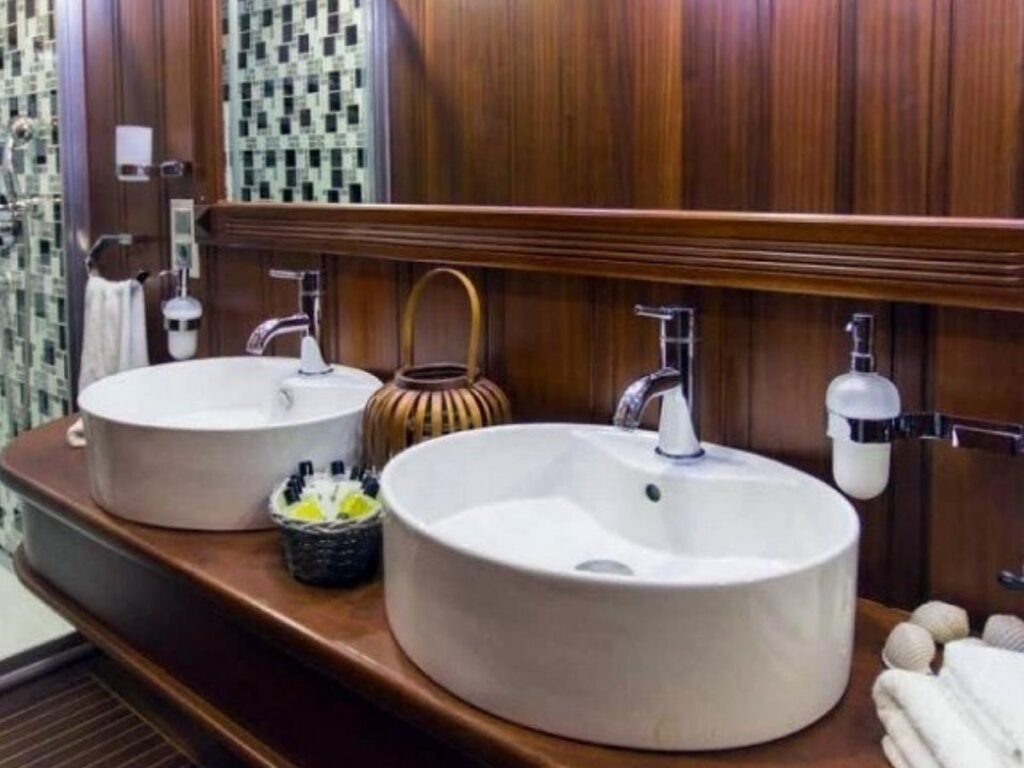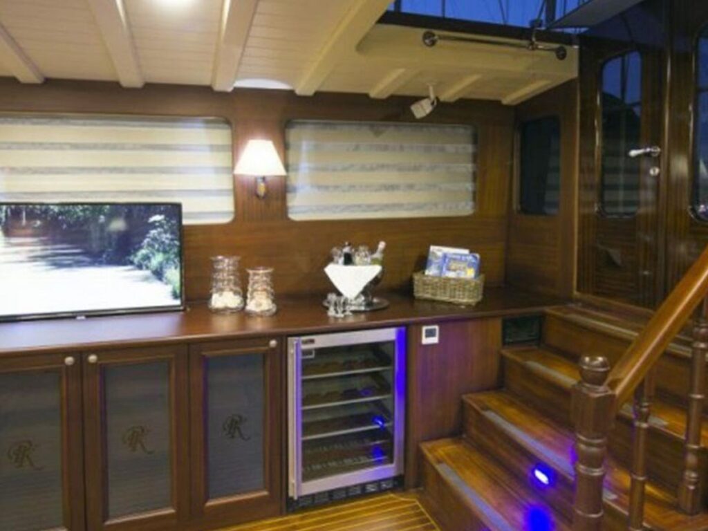 The interior of Gulet Princess Karia 2 is very elegant and tasteful and the interior exudes pure luxury. There is a TV, DVD and music system in the salon for your entertainment. You can sit back on cushions and sunbathe while your meals are prepared in a fully equipped separate kitchen.