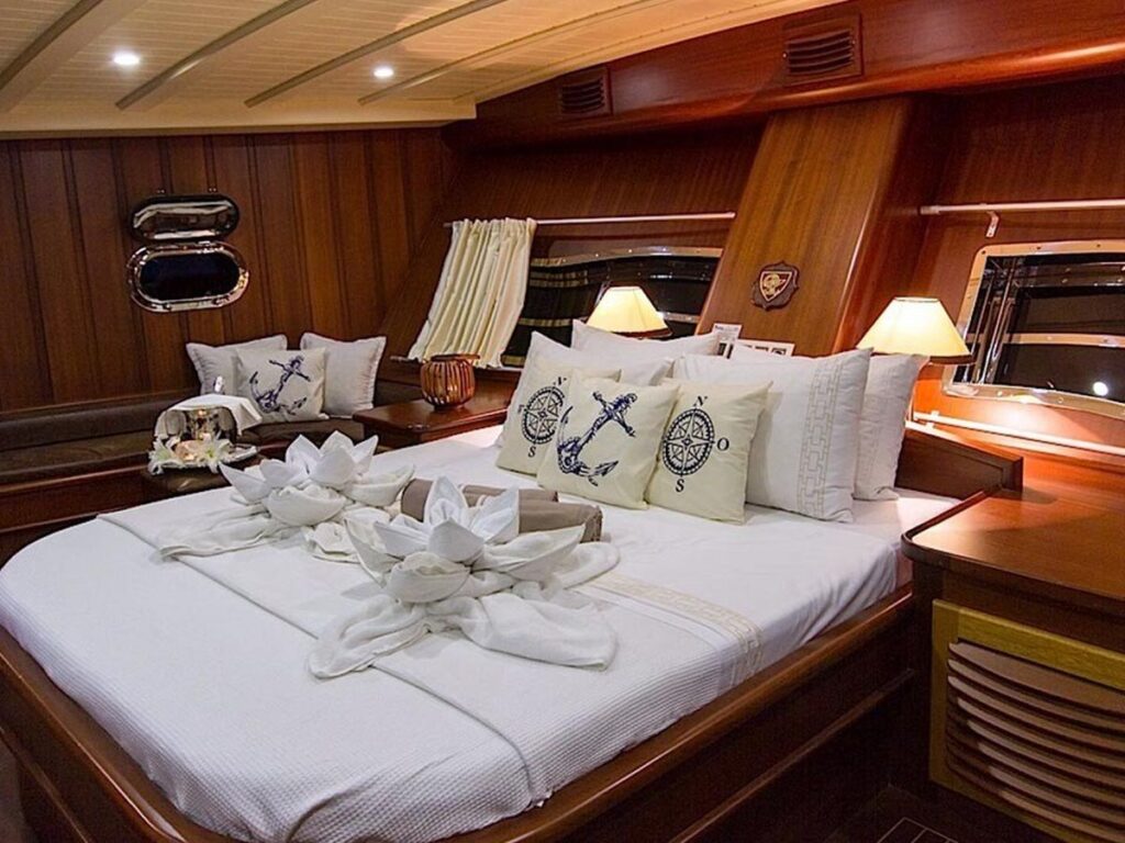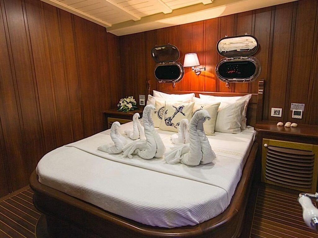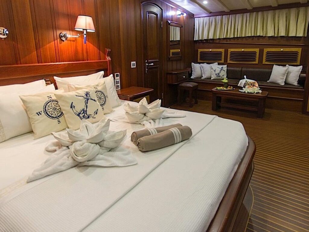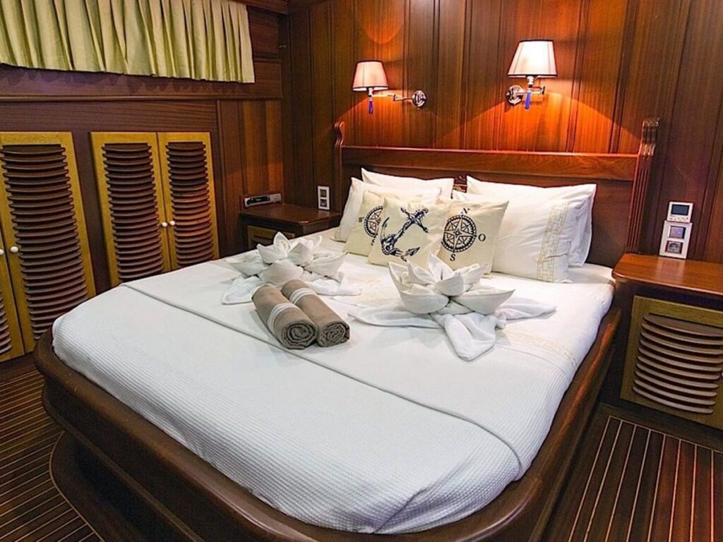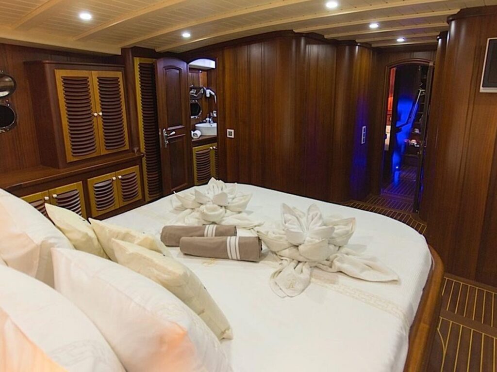 Gulet Princess Karia 2 is a 35 meter luxury yacht with 2 Master, 2 Double, 2 Triple Cabins, and suitable for a total capacity of 12 guests. Each cabin is well equipped with private shower and toilet facilities and air conditioning. Aboard this breathtaking yacht, you will lack nothing at all.