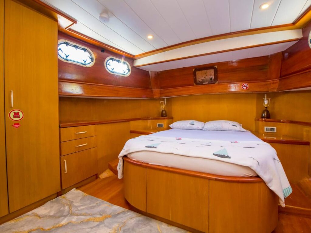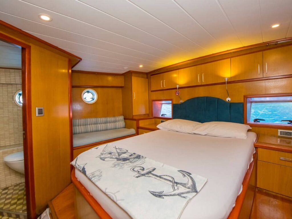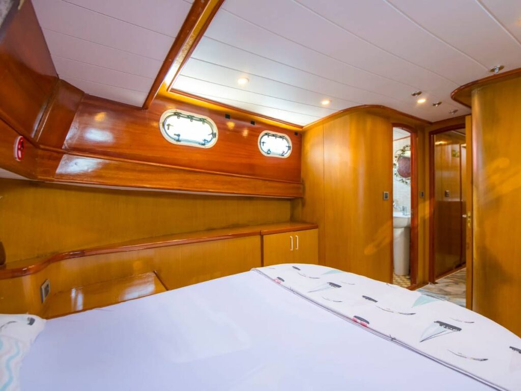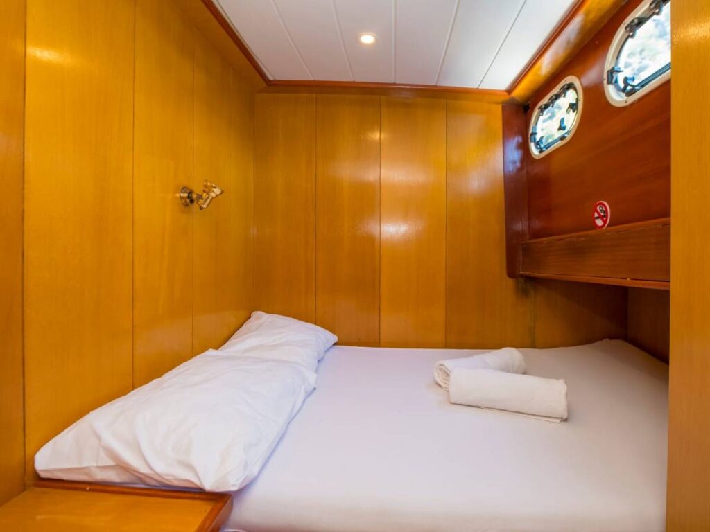 This beautiful, well-loved gulet has 3 cabins, all of which have their own shower and toilet. There is no air conditioning.