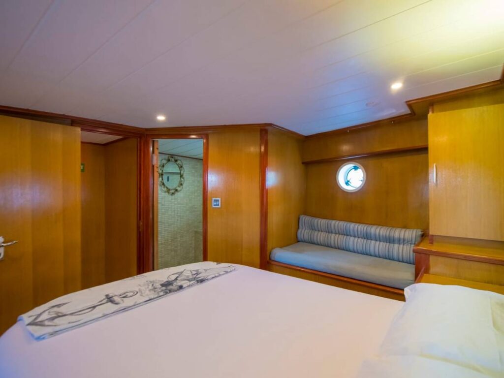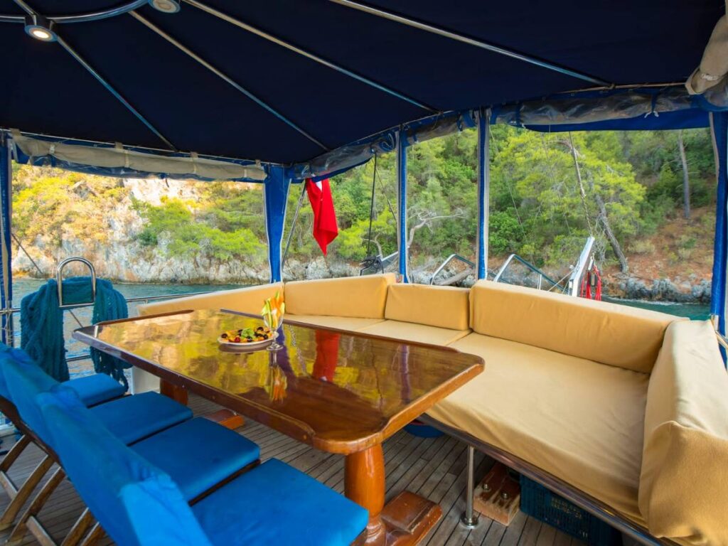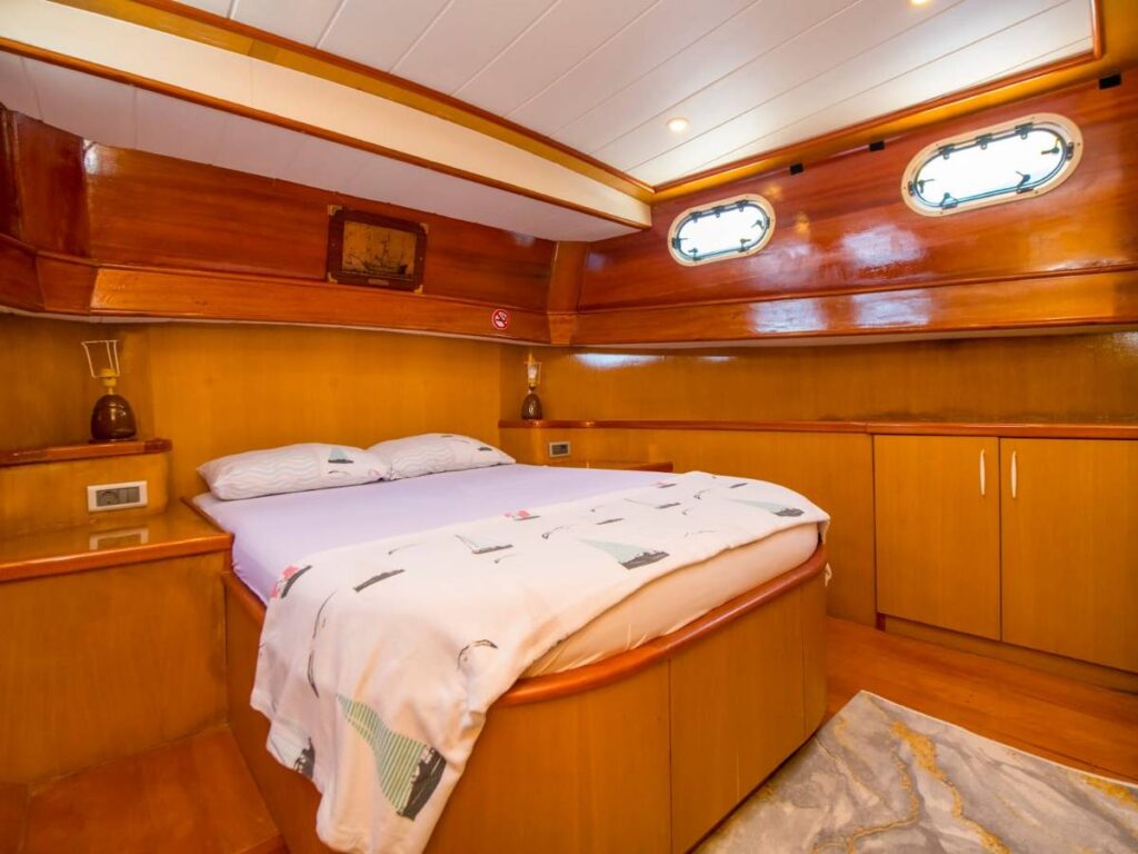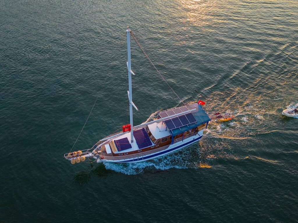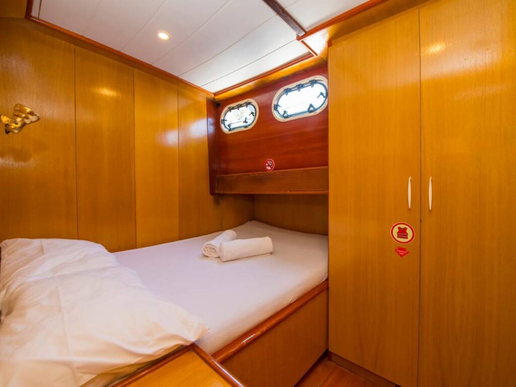 This beautiful, well-loved gulet has 3 cabins, all of which have their own shower and toilet. There is no air conditioning.