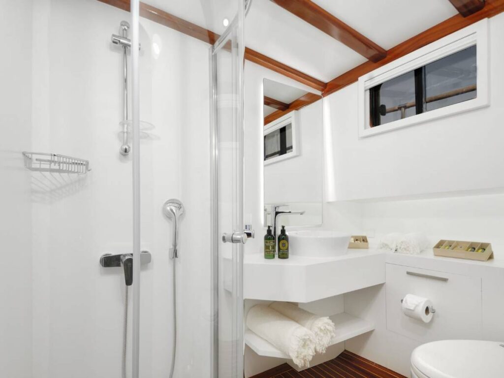 The captain and 2 crew members are present without being intrusive and you will lack nothing. The 4 cabins are fully equipped, such as air conditioning and separate shower and toilet and everywhere on board there is enough space to relax and enjoy all the beautiful things you see.