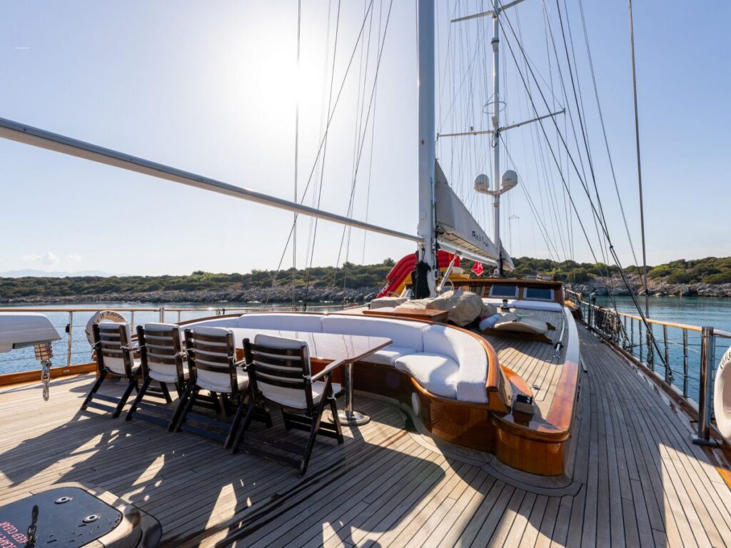 We proudly present TAKE IT EASIER, a beautifully maintained 38-metre traditional gulet offering an elegant and effortlessly relaxed charter experience along Turkey’s Aegean and Mediterranean coastlines. Built in 2007 by the esteemed craftsmen of Cavusoglu Yat Imalathanesi, she reflects timeless wooden yacht construction, enhanced with carefully considered modern upgrades. Long-term private ownership, combined with a dedicated and consistent crew, ensures she is maintained and operated to the highest standards.