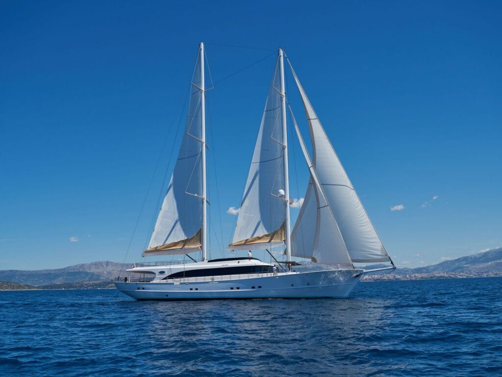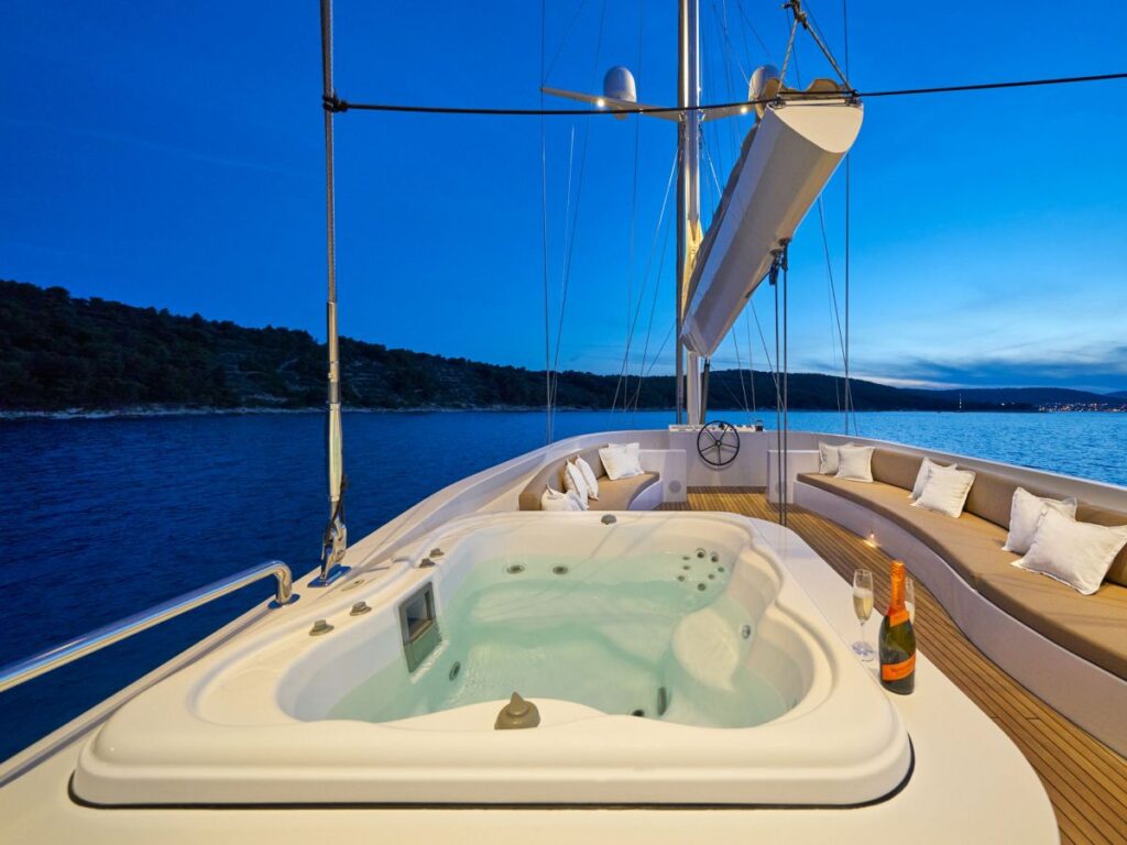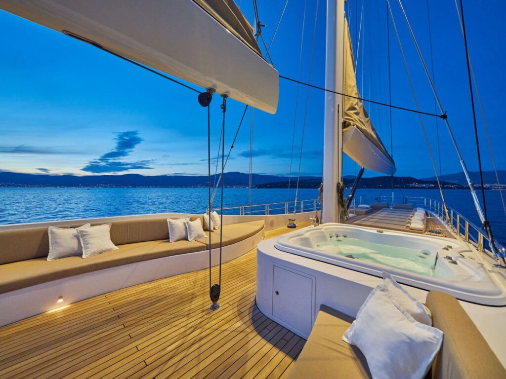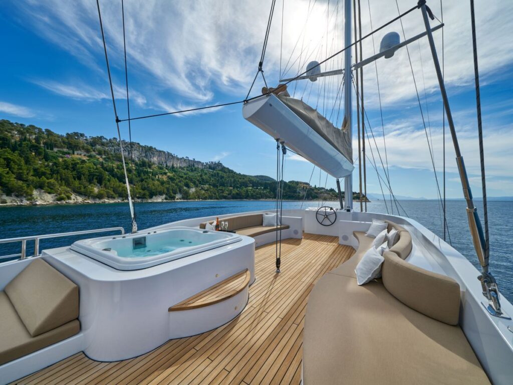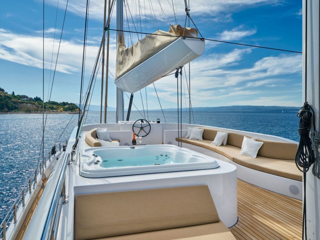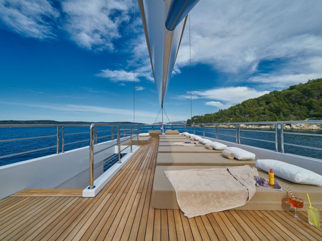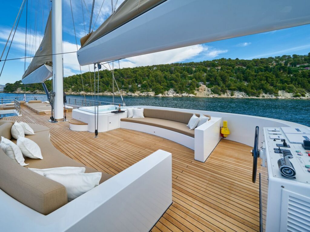 Guests will enjoy the rare experience of relaxing on the flybridge beneath full sail, while a professional and attentive crew delivers seamless service throughout the journey. Acapella’s advanced rigging and sailing setup are exceptional, enhancing both performance and the overall onboard experience.