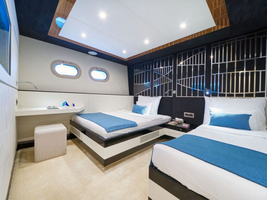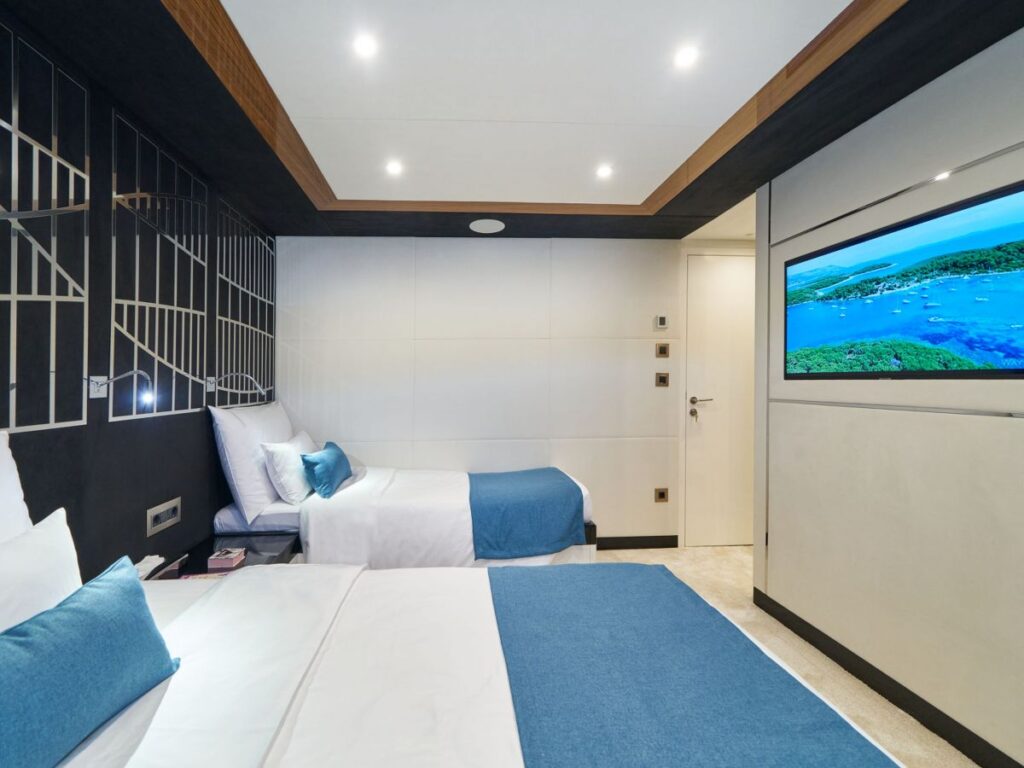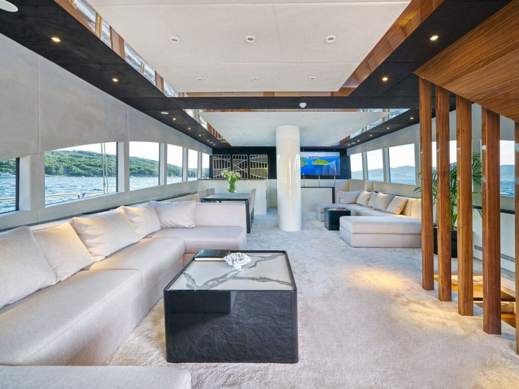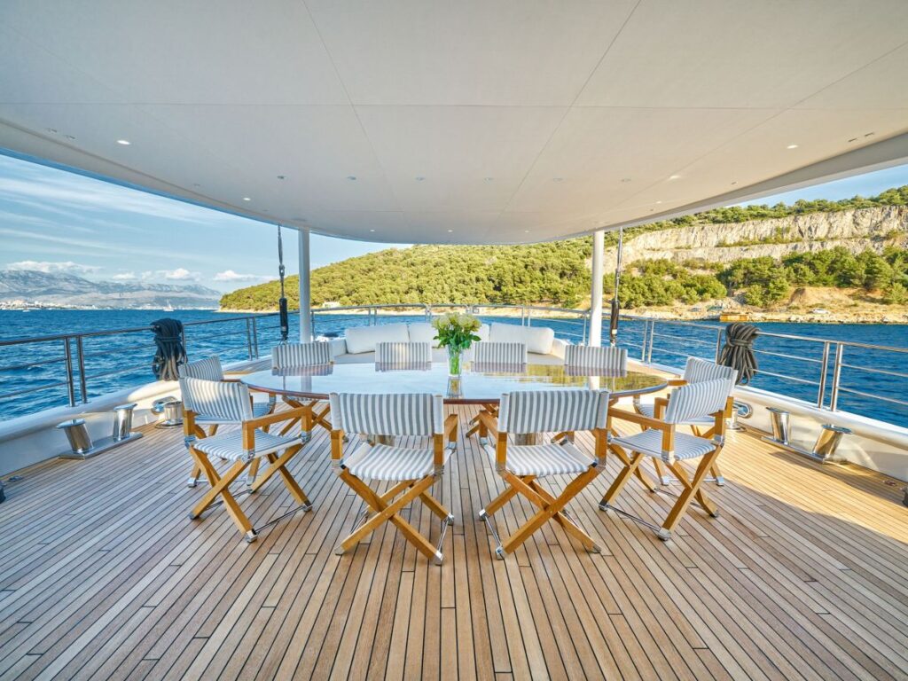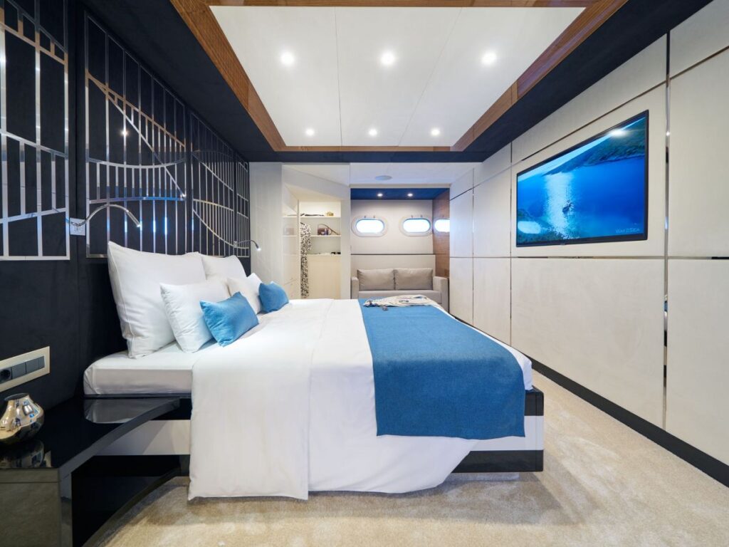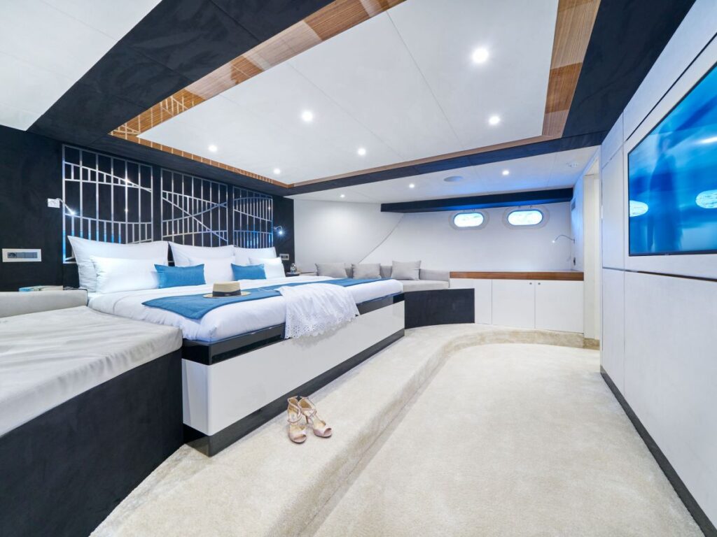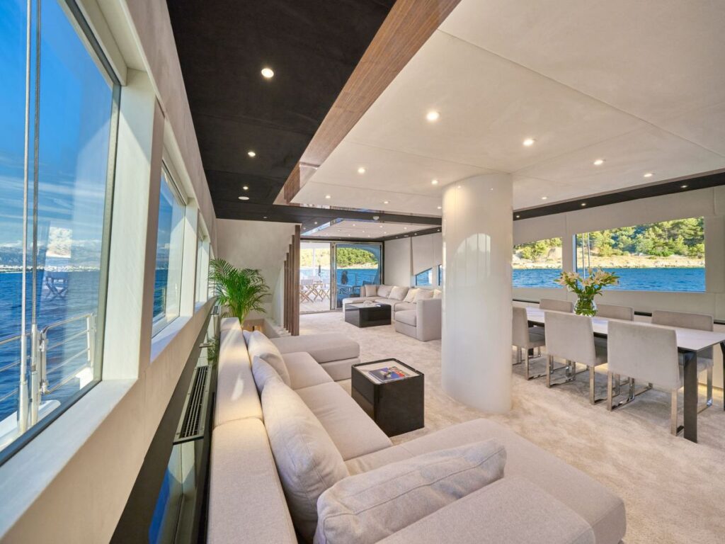 Guests will enjoy the rare experience of relaxing on the flybridge beneath full sail, while a professional and attentive crew delivers seamless service throughout the journey. Acapella’s advanced rigging and sailing setup are exceptional, enhancing both performance and the overall onboard experience.