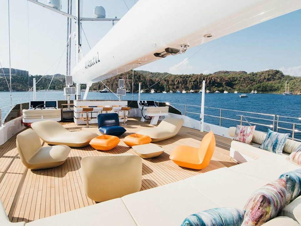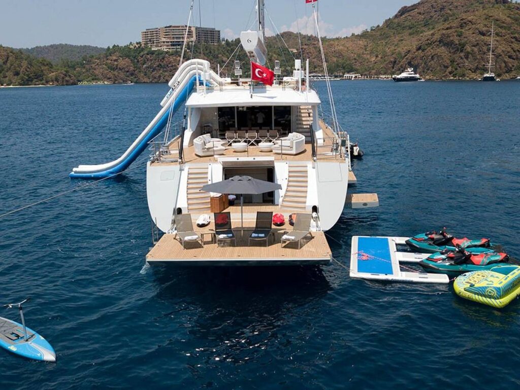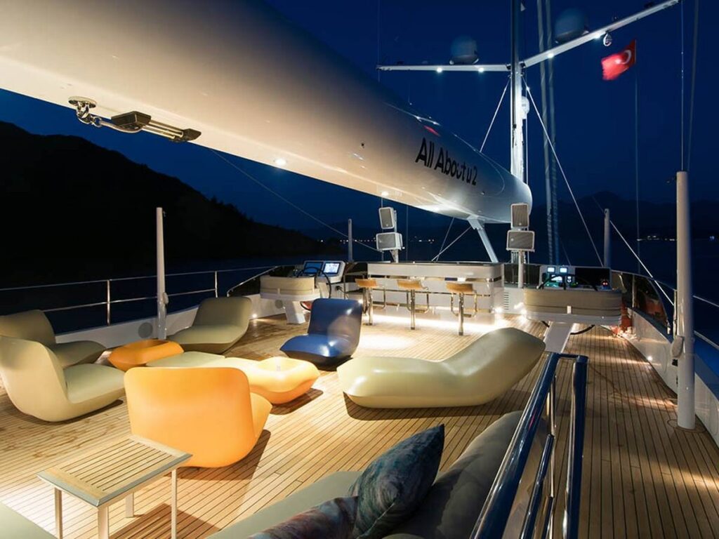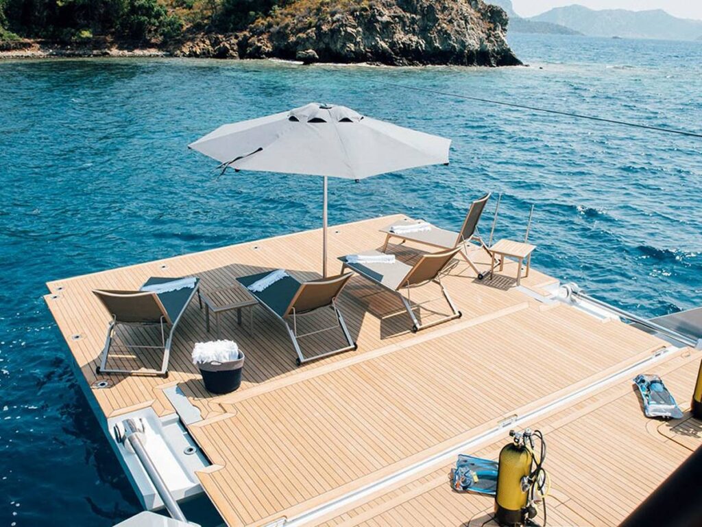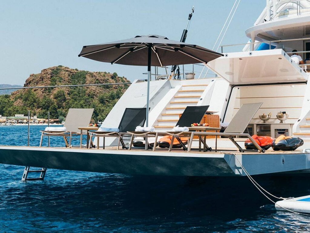 Multiple seating areas have been created throughout on board so that you can seclude yourself and enjoy everything you see. The huge range of water sports options is of course a very pleasant meeting, staying active during your holiday 🙂