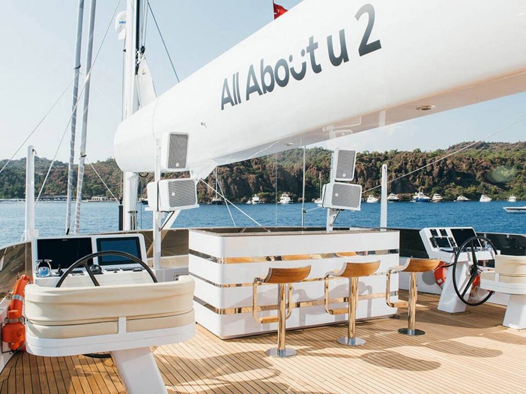 All About U 2 is a fantastic yacht for those who love luxury and space. This 50 meter long yacht was built in 2019 and is equipped with all luxury and modern conveniences. The crew of 9 is available day and night and the cook is a true magician when it comes to cooking.