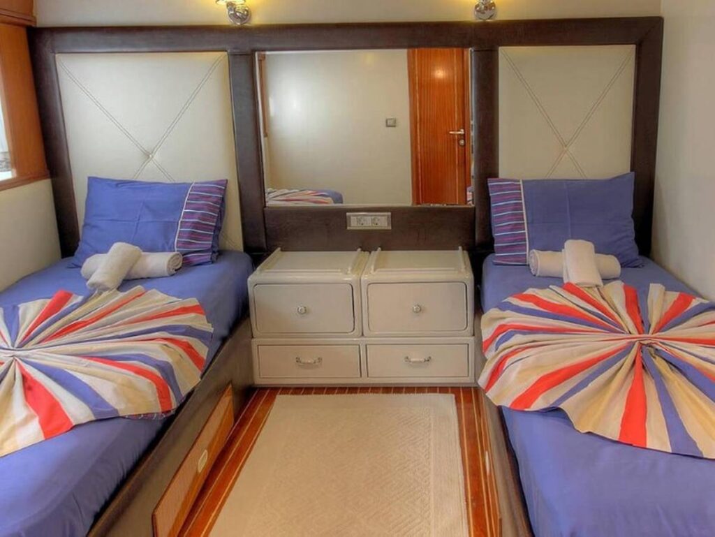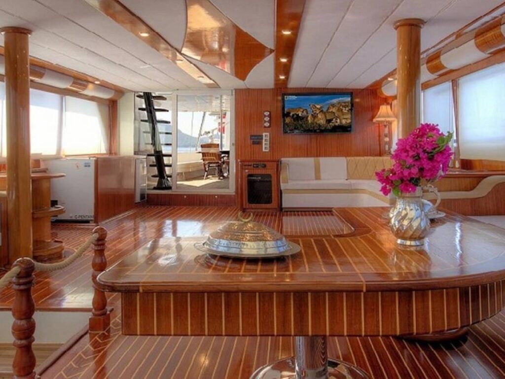 This beautiful yacht has 7 cabins and these are all elegantly furnished and equipped with all modern comforts.