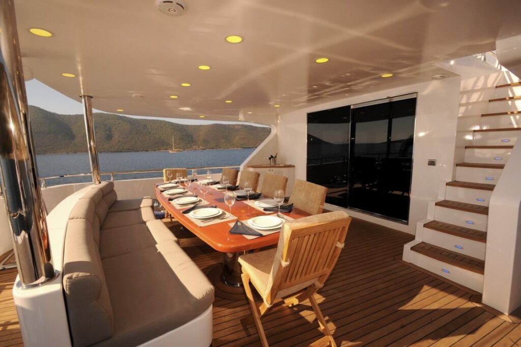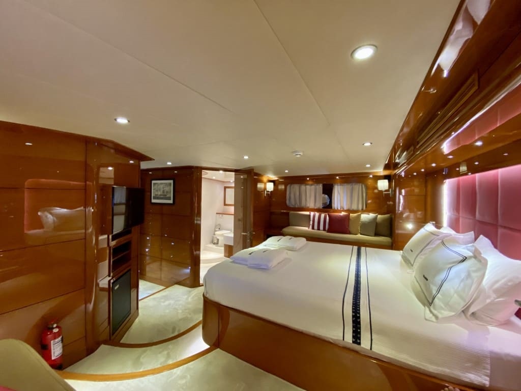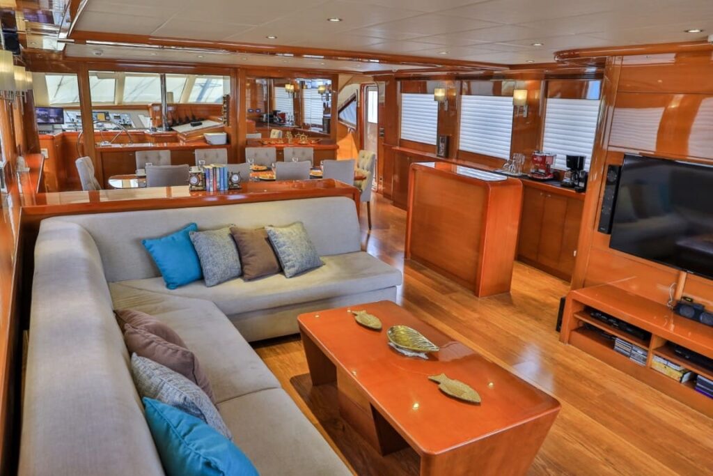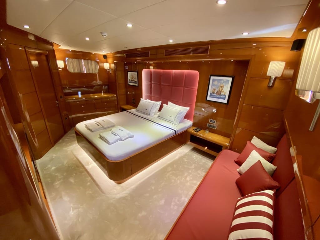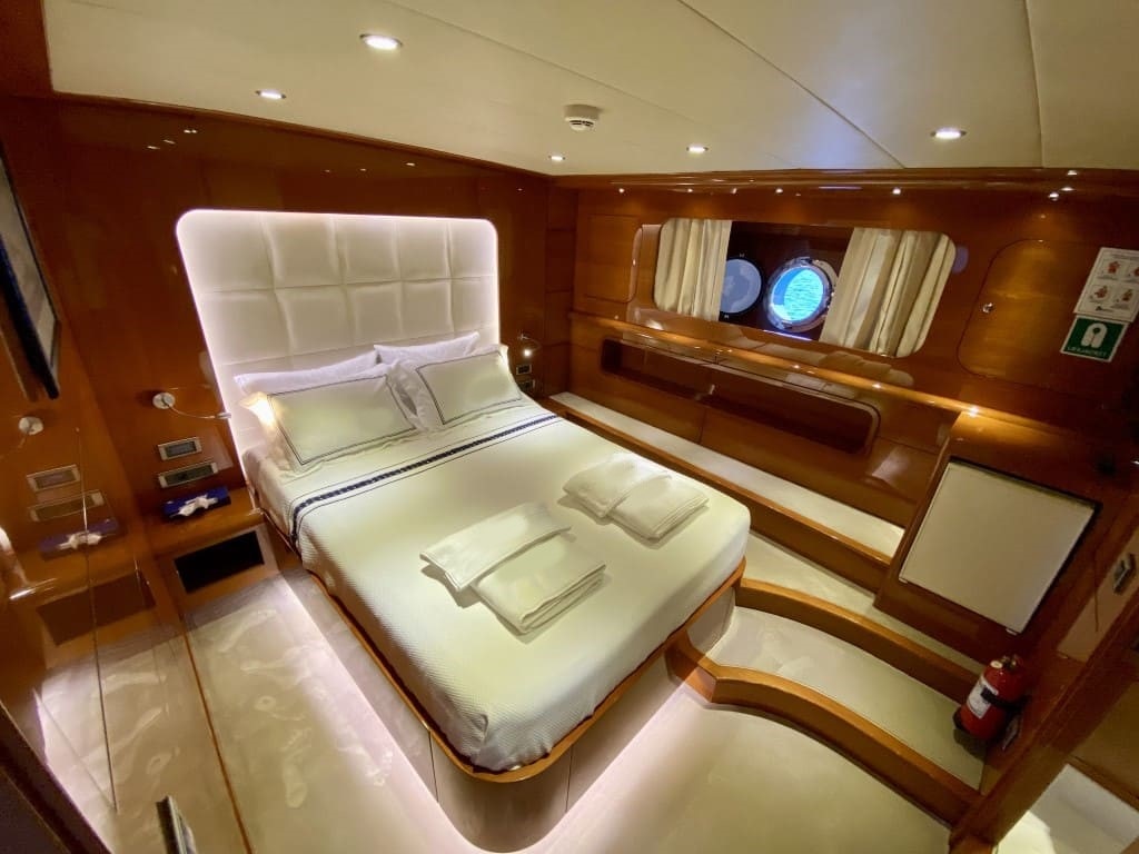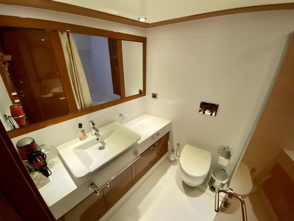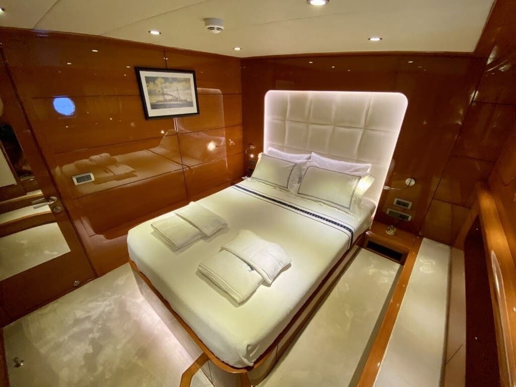 As soon as you step aboard this great yacht, you imagine yourself in a dream world. The 6 cabins, as well as the yacht itself, both inside and out, are extremely elegant and luxurious. The lounge and sitting area are also very comfortable and stylishly furnished. The second floor (Flybridge) is one of the biggest attractions, where you can comfortably sunbathe, enjoy your drinks, and relax while cruising.