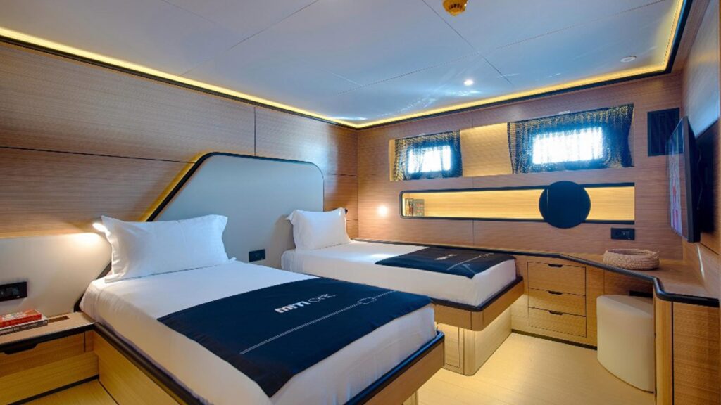 M/S Miti One – The 34.06-meter MITI ONE is an elegant, modern, solar-powered sailing vessel with a classic design and an inviting, contemporary interior. Launched in 2021, the vessel accommodates up to 10 guests in 5 cabins, with additional cabins for a crew of 6. This unique yacht cruises the entire Mediterranean, ensuring you’ll want for nothing during this unforgettable vacation.