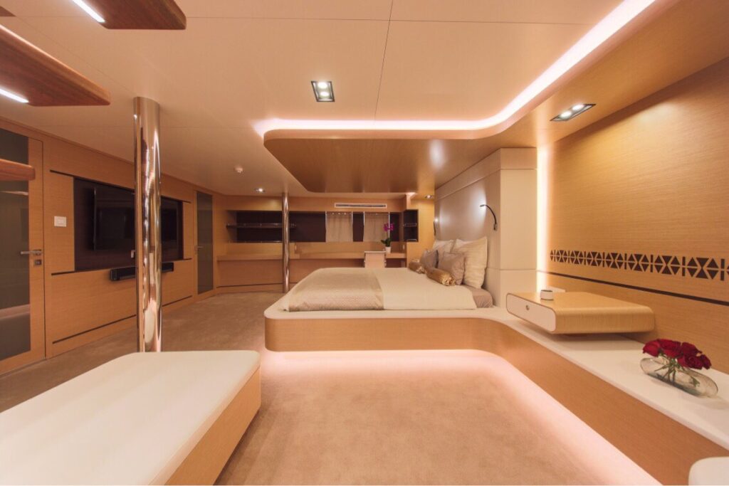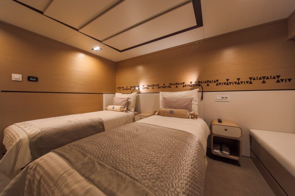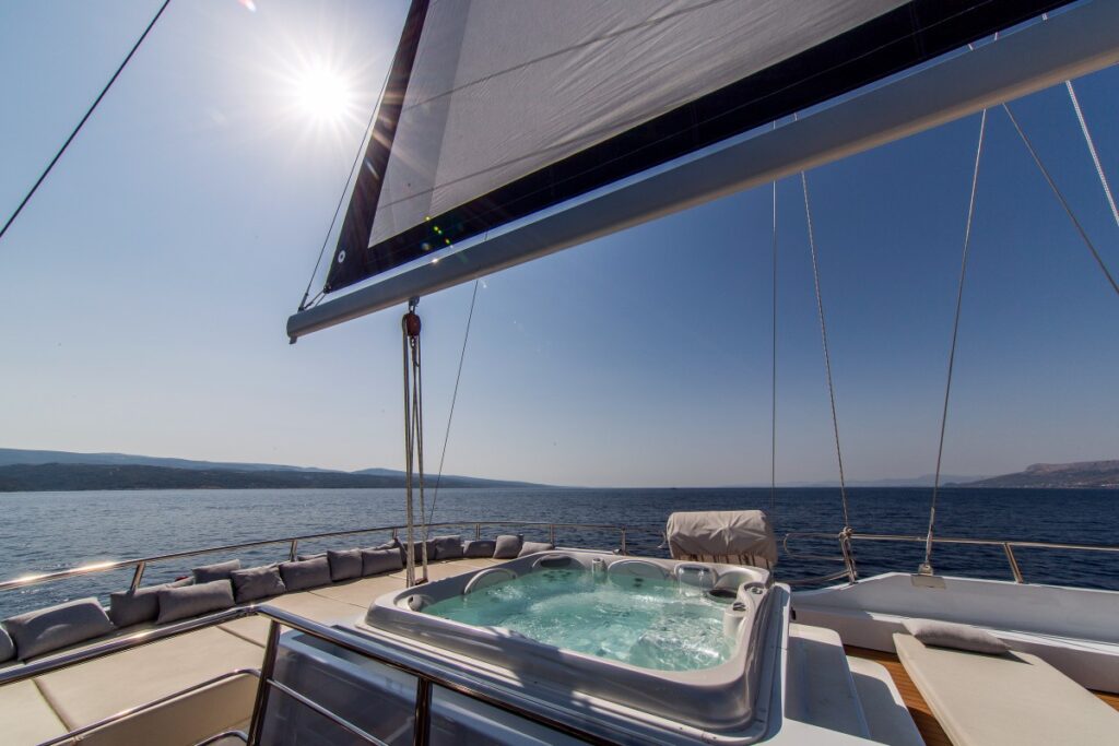 This beautiful spacious yacht with 6 cabins can accommodate 12 people and has a crew of 10 people. It goes without saying that you will lack nothing on board this yacht.