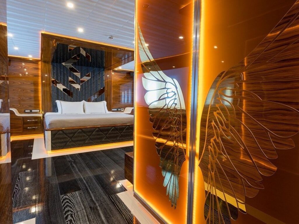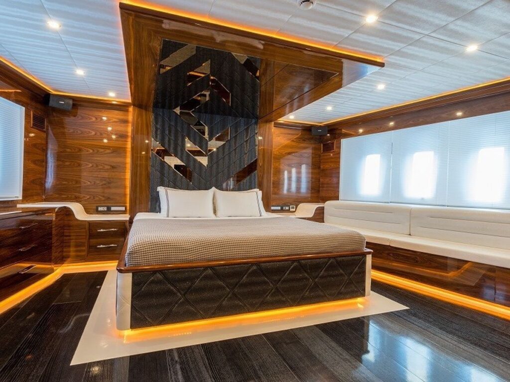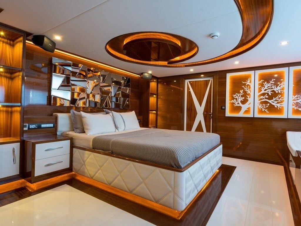 This exclusive yacht accommodates up to 10 guests in 5 spacious and beautifully designed cabins, including: