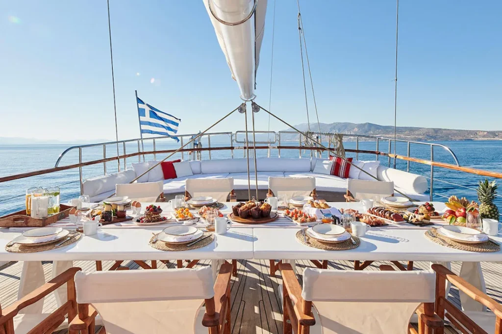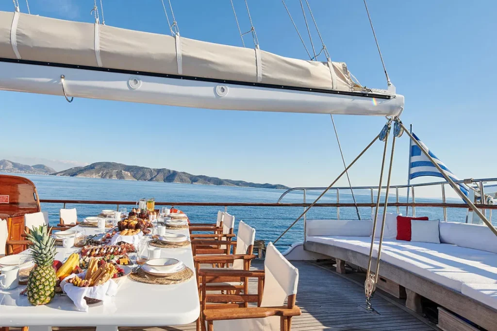 Active guests will appreciate the wide selection of water toys available on board, while sun lovers can unwind and soak up the morning sun on the spacious aft deck. As lunchtime approaches, the attentive crew delights guests with freshly caught seafood and the vibrant flavors of Mediterranean cuisine, served with care and elegance.
