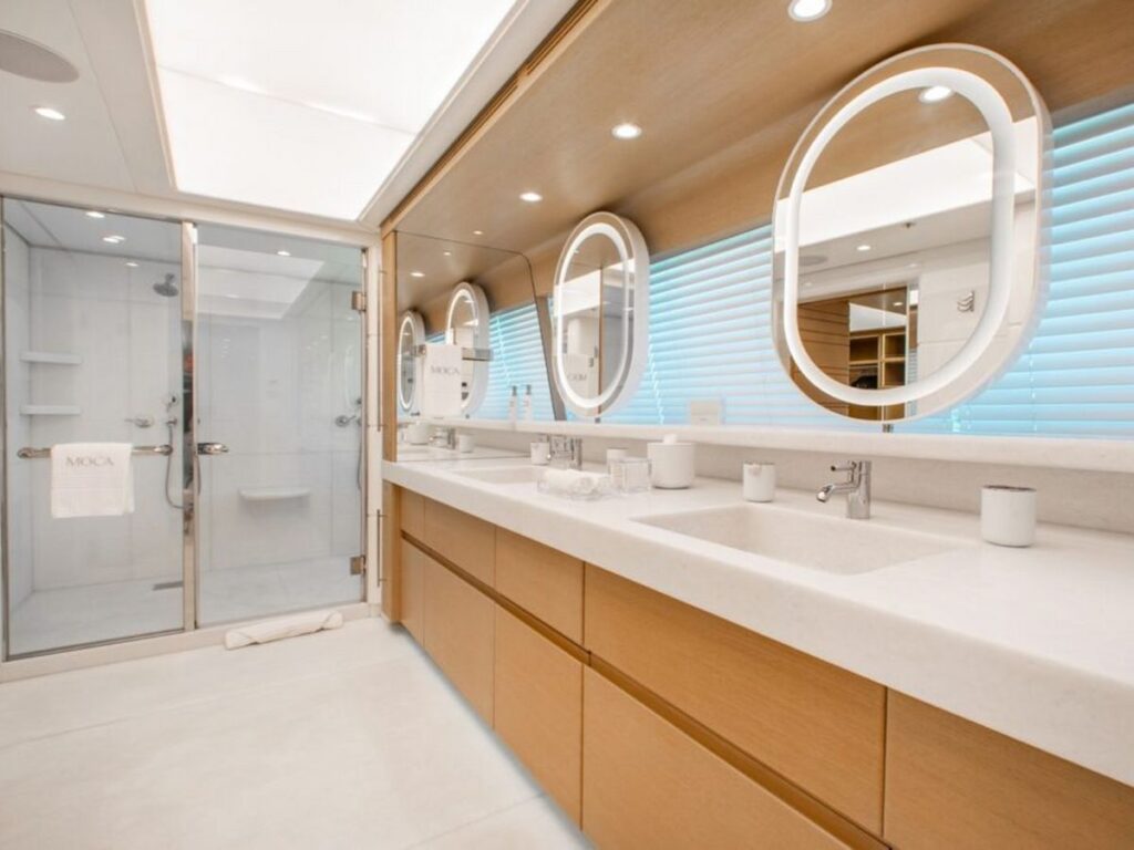 Built in 2016, Moca features a large number of terraces, ideal for relaxation and entertainment indoors or outdoors, allowing guests to experience la dolce vita on the open water. Its facilities include a children’s playroom, wheelchair accessibility, lift, underwater lighting, beach club and gym.