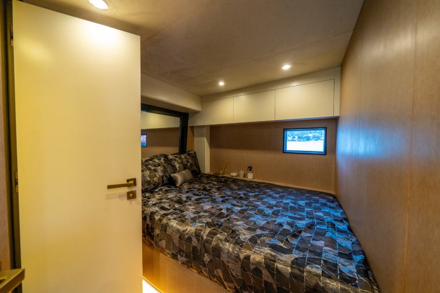 M/Y Phantom Spook 62 – The Phantom Spook 62 combines elegance and performance, offering an exceptional experience with its 18.5-meter length and robust hull design. Powered by twin Volvo Penta D8 diesel engines with a total output of 1,200 hp, this luxury yacht reaches a cruising speed of 24 knots and a top speed of 26 knots, offering both safety and thrills at sea.