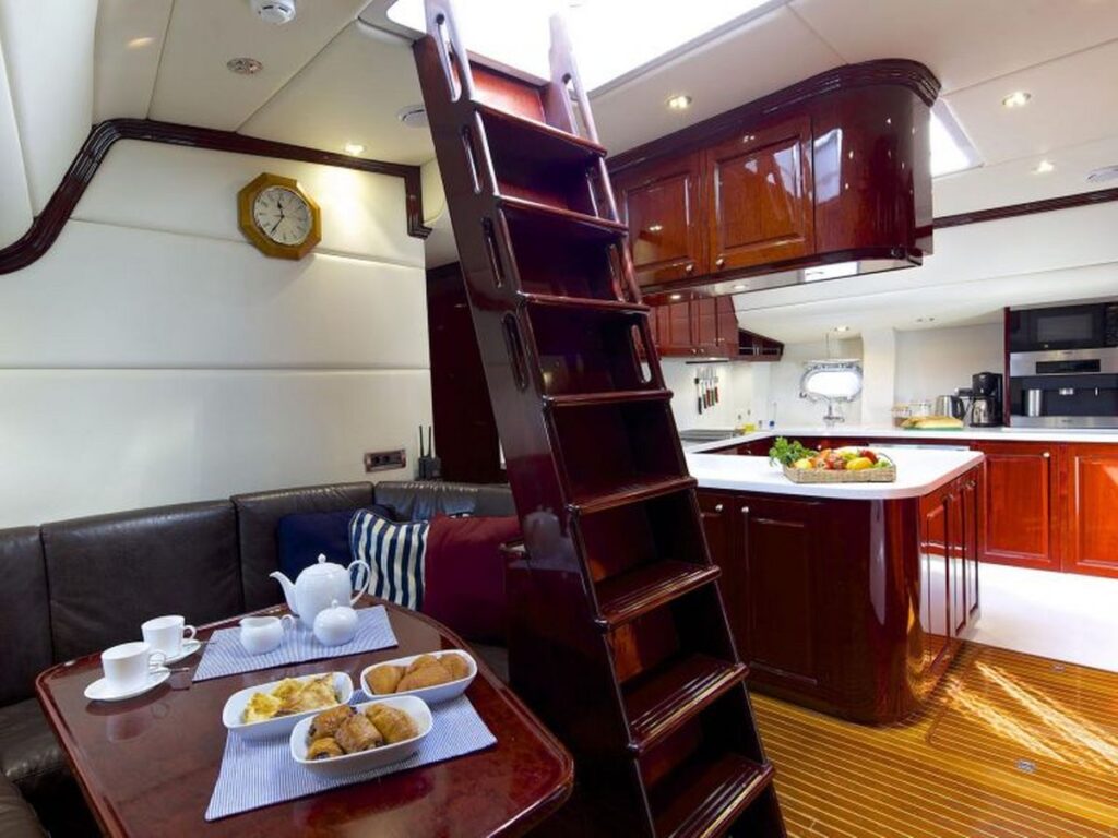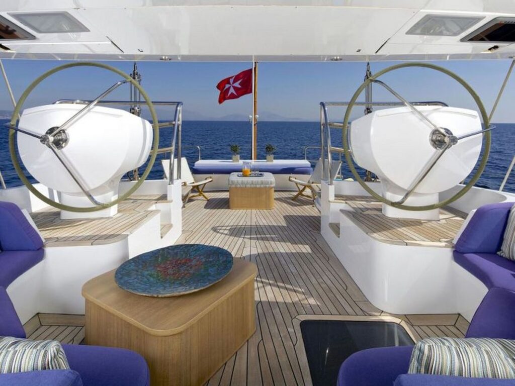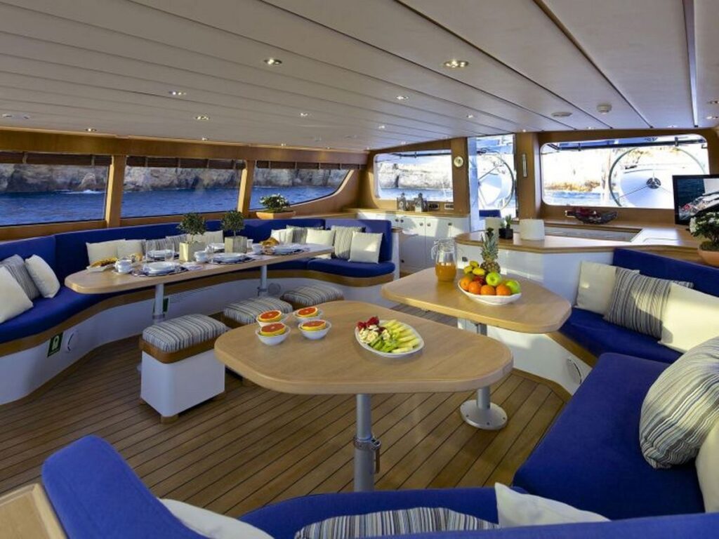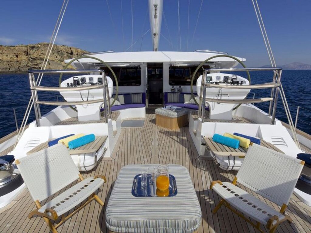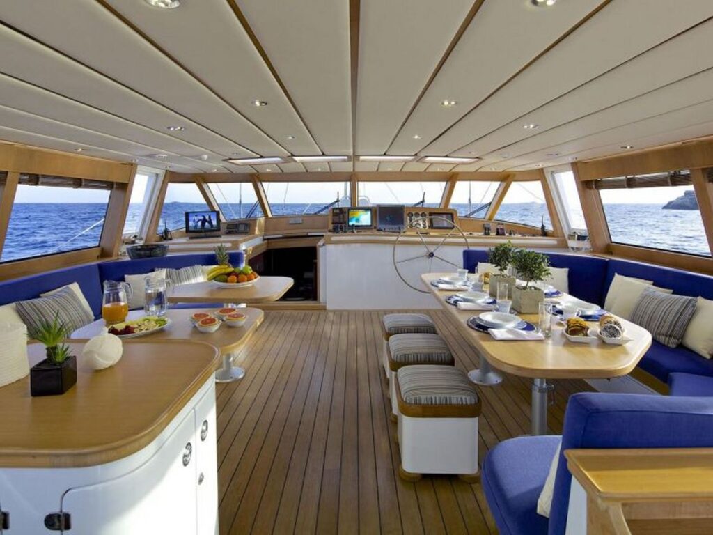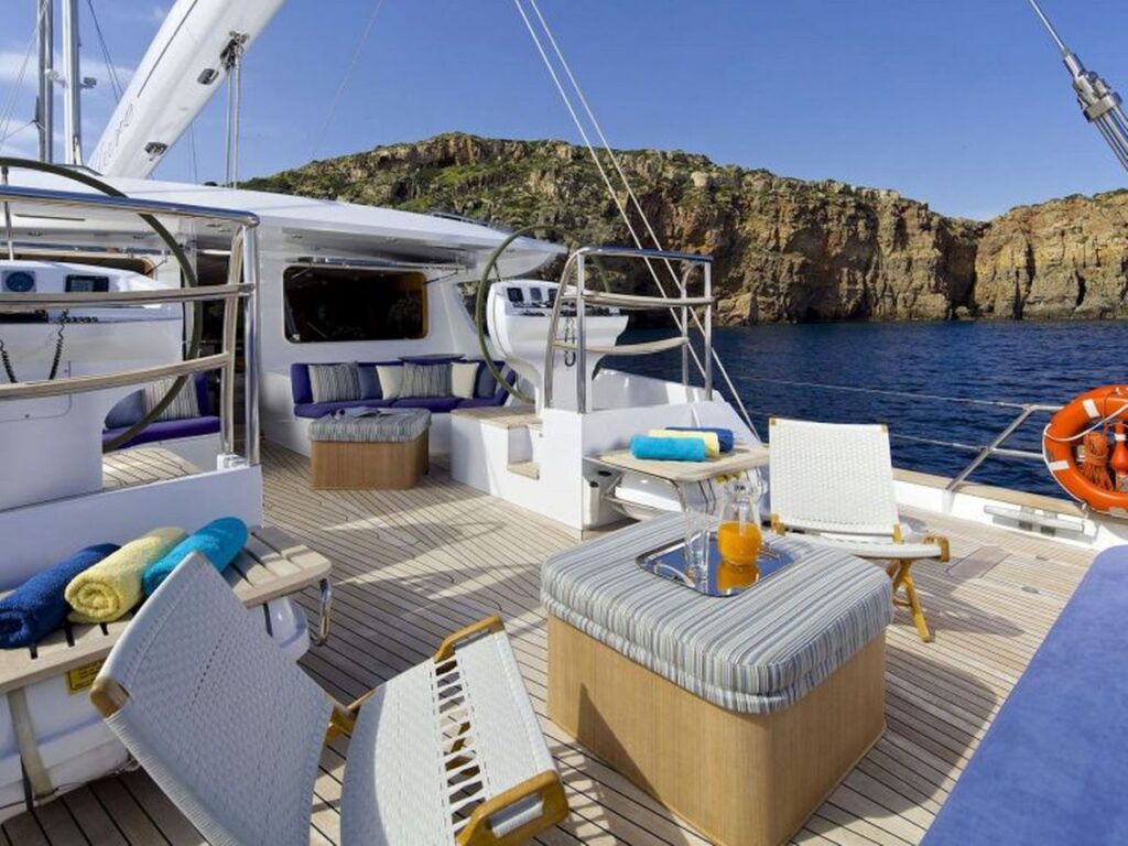 Aboard the sloop-rigged sailing yacht ALLURE, there is ample outdoor space to enjoy. A partially enclosed bridge deck offers comfortable seating and al fresco dining, while you enjoy idyllic views from the wraparound windows.