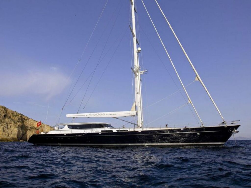 S/Y Allure – Luxury sailing yacht ALLURE was designed by naval architect Angelo Lauranos and built in South Africa. The yacht is almost 41 m (133 ft) long and was delivered in 1995. S/Y ALLURE (Ex. CORSTA V) was renovated in 2009 and can accommodate up to 8 guests in 4 en suite cabins. ALLURE offers a dedicated crew of 6 and is available in the Mediterranean.