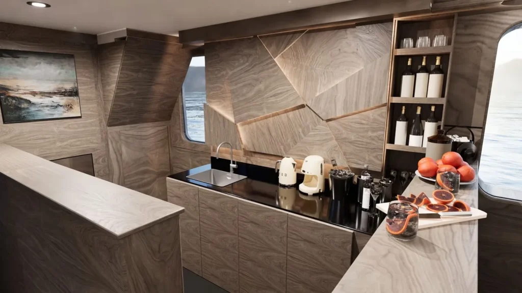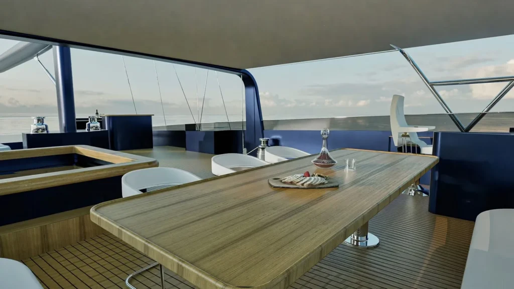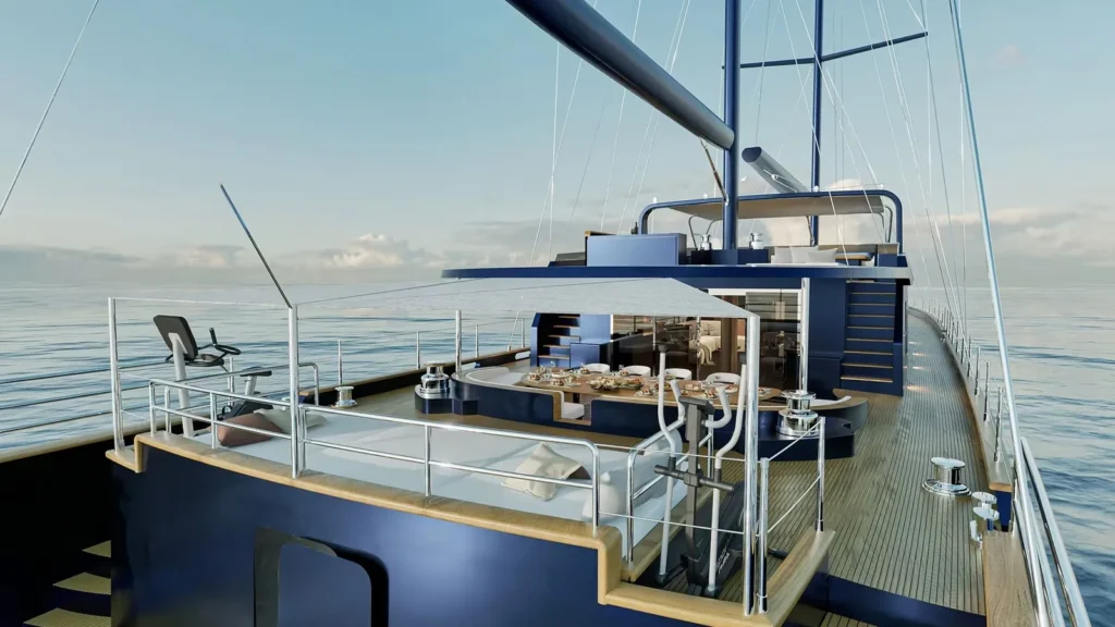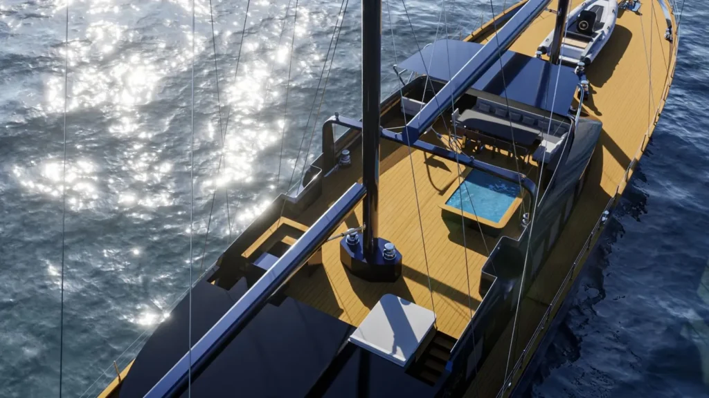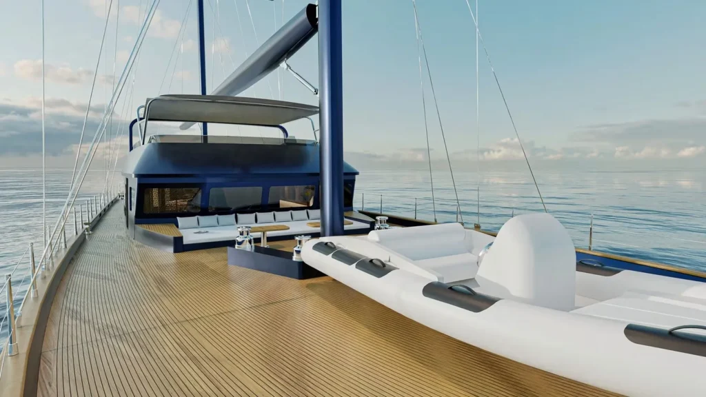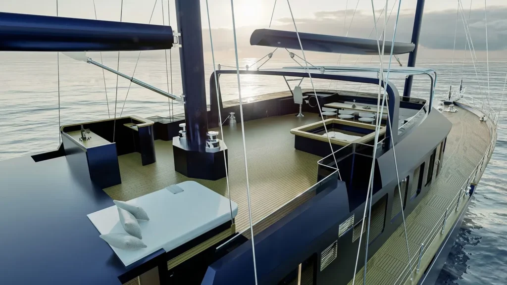 The sail system is electric and hydraulic. There are two hydraulic furling systems at the bow of the boat. Equipped with a high-quality sail system, the boat is estimated to have a speed of 27 km/h.