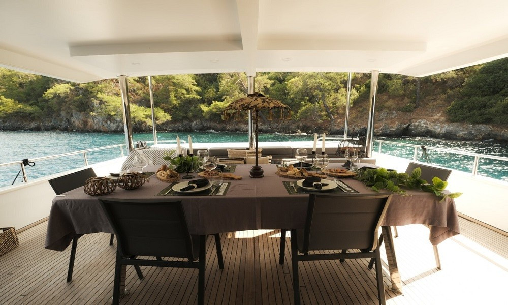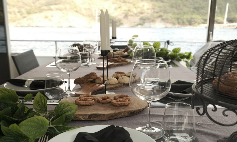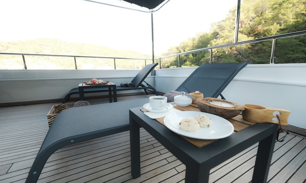 The carefully arranged cabins are modernly furnished and very spacious. The cabins are equipped with a toilet, shower, air conditioning, music system and TV. The boat that leaves from Fethiye is the right choice for a very relaxing and comfortable holiday.