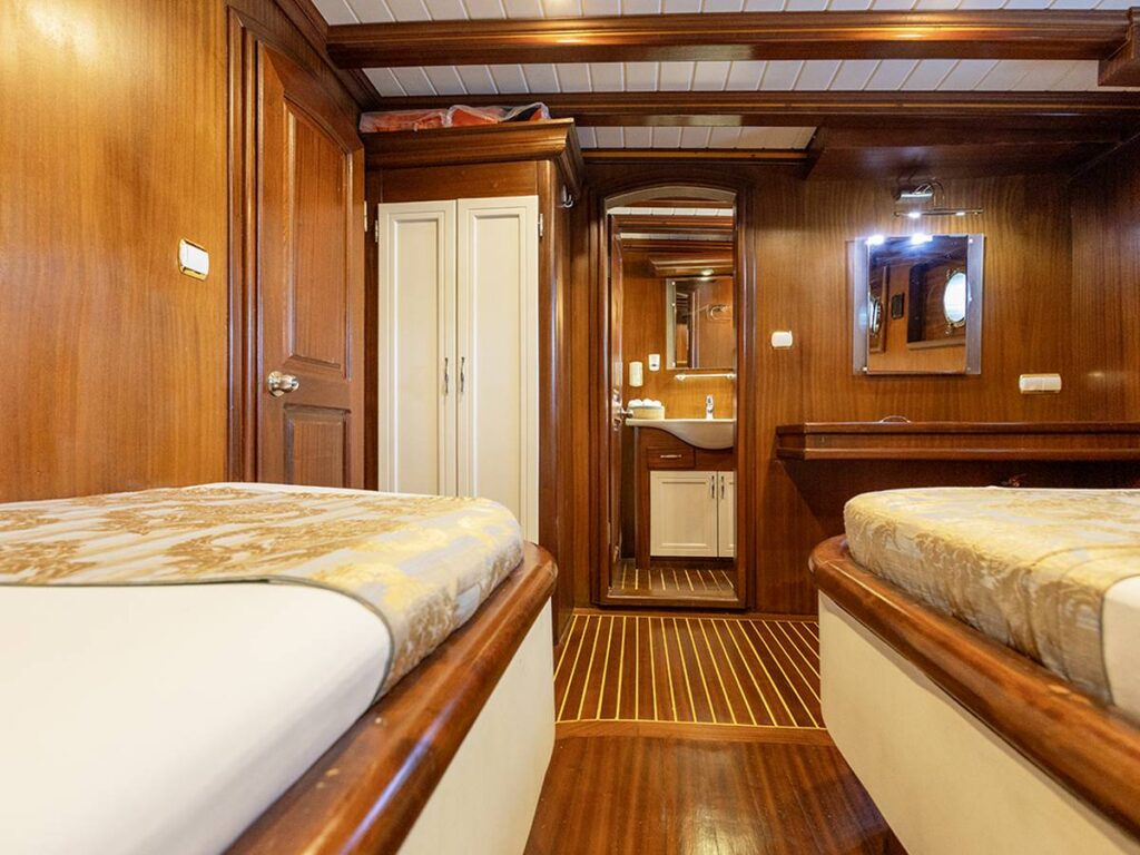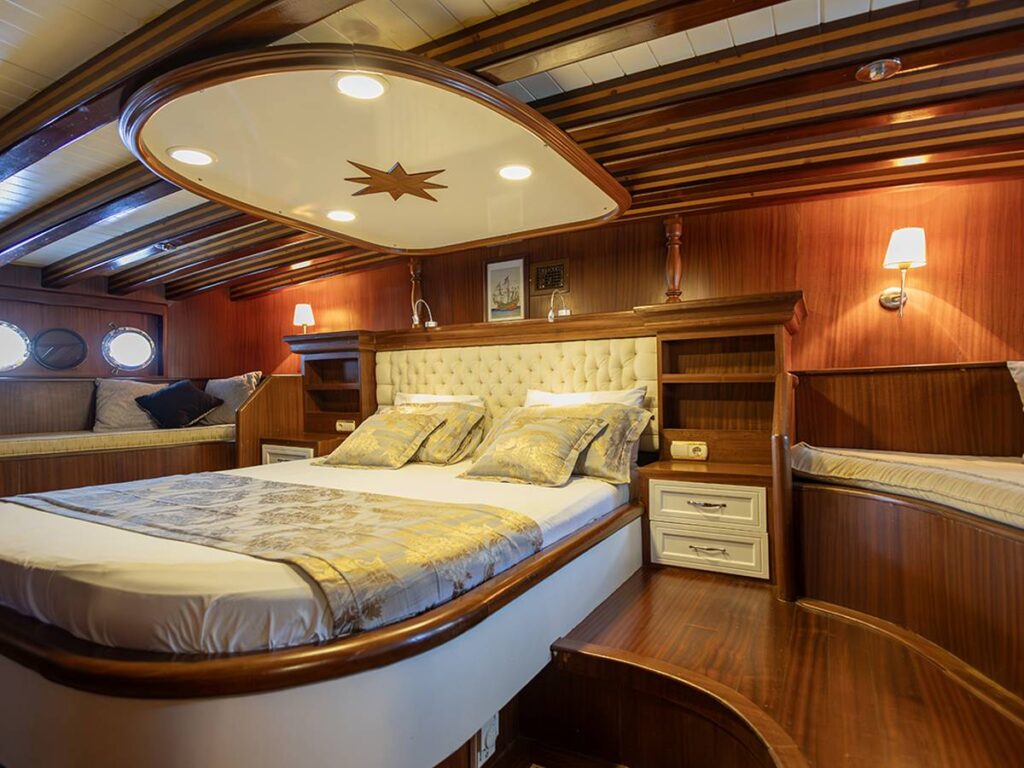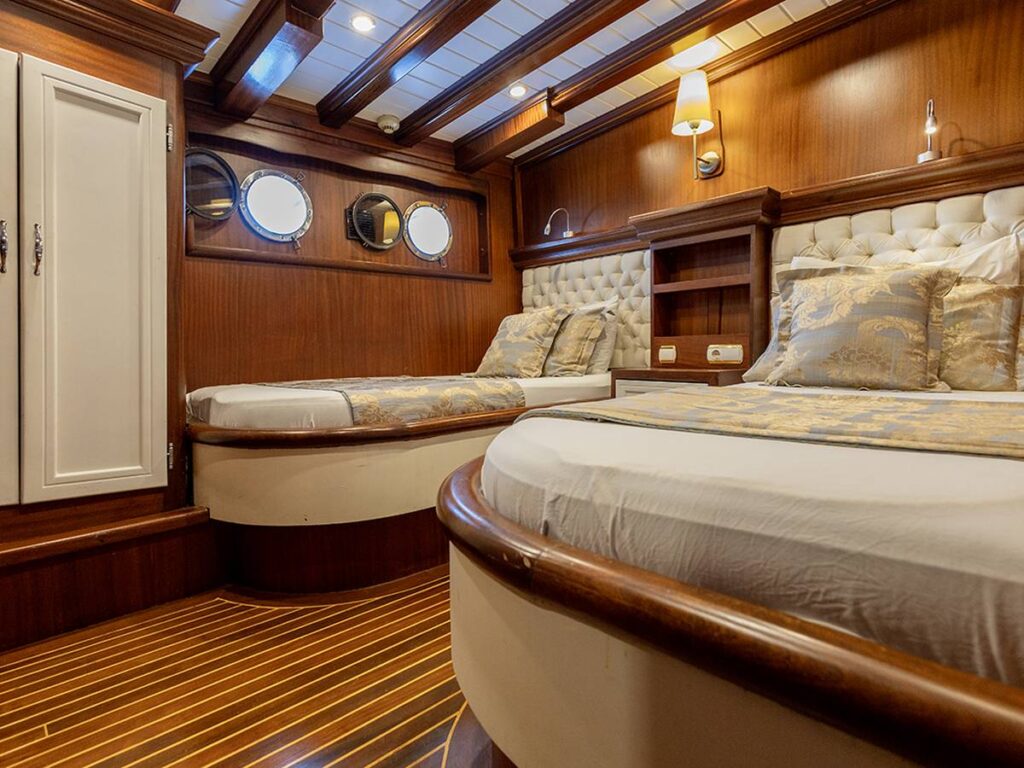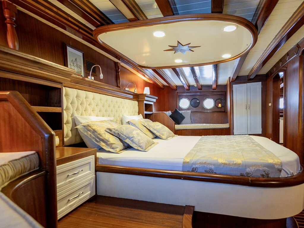 8 kabini ile 18 kişilik kapasiteye sahip olan gulet, büyük güverteleri ve rahat yaşam alanları ile dikkat çekiyor. Klasik bir şekilde döşenmiş tarzı ile konforlu ve güvenli bir tatil sunuyor.
