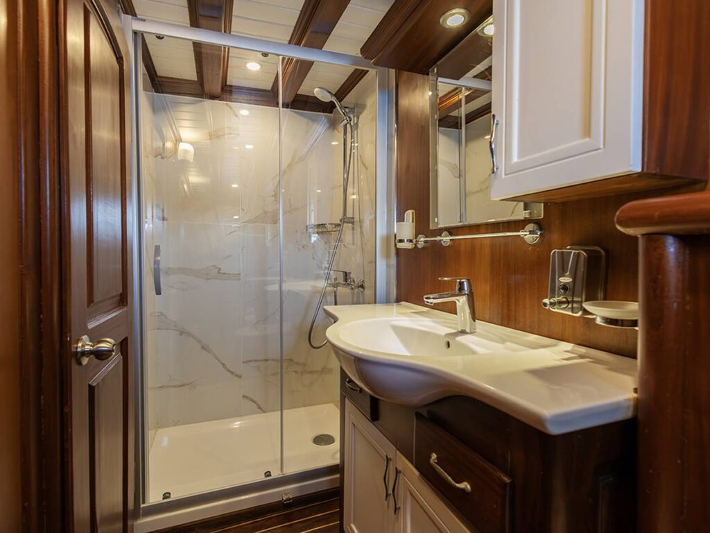 Klima ile donatılmış kabinleri, açık-kapalı yemek alanları ve geniş bir alana yayılan güneşlenme minderleri bulunmaktadır.