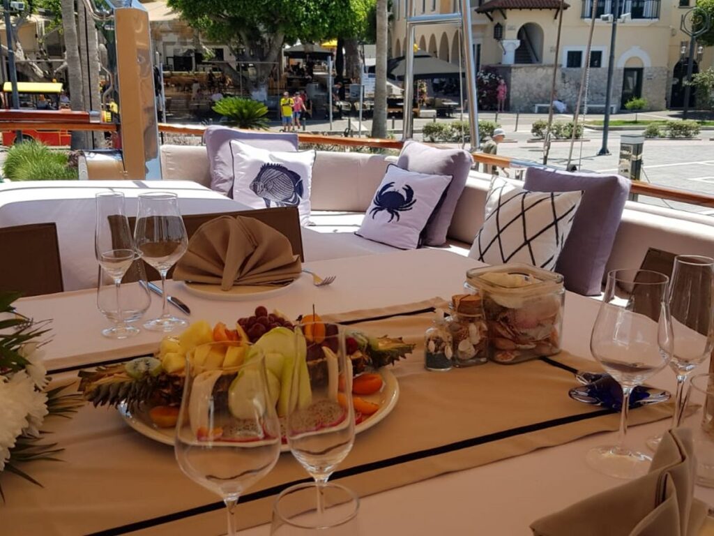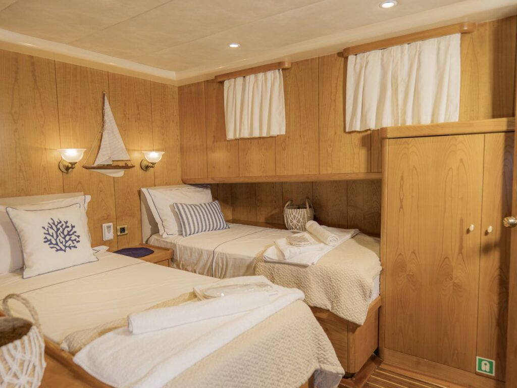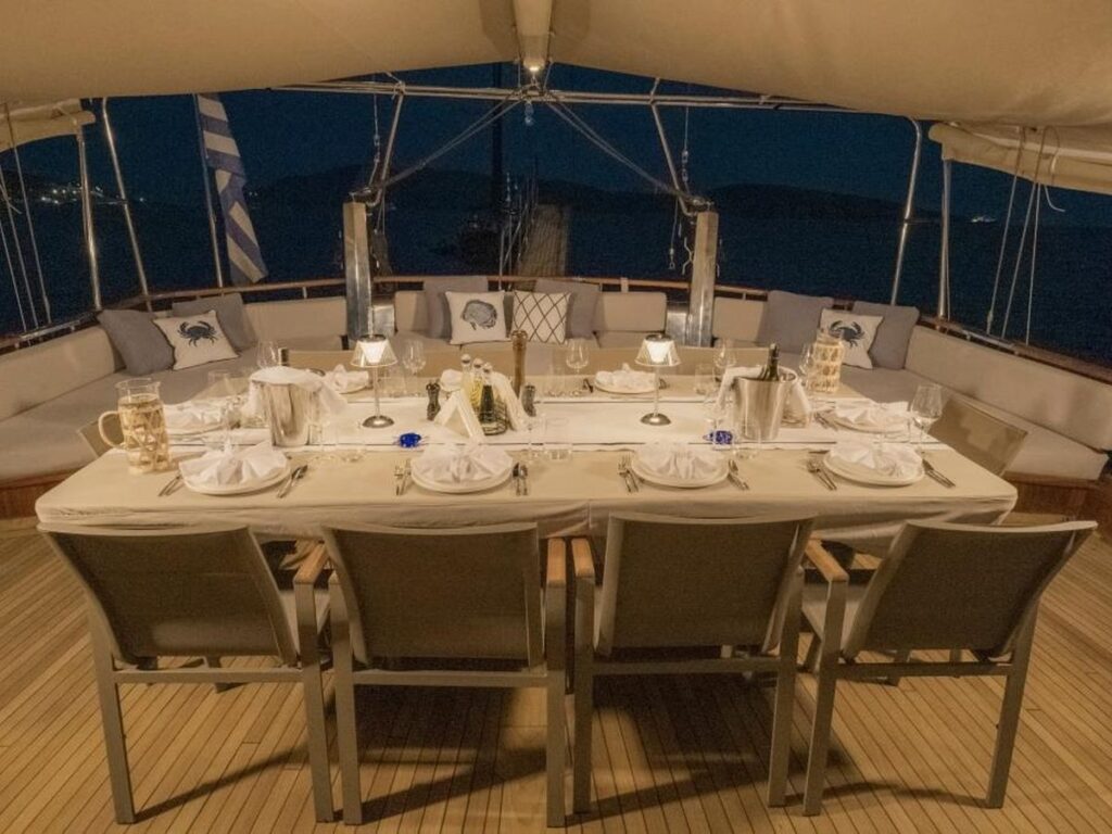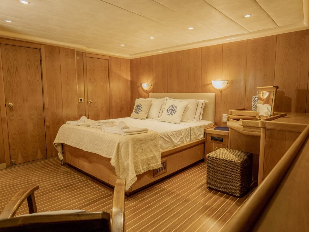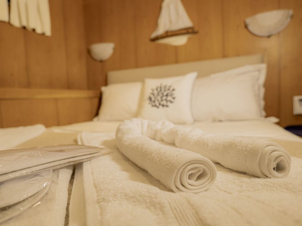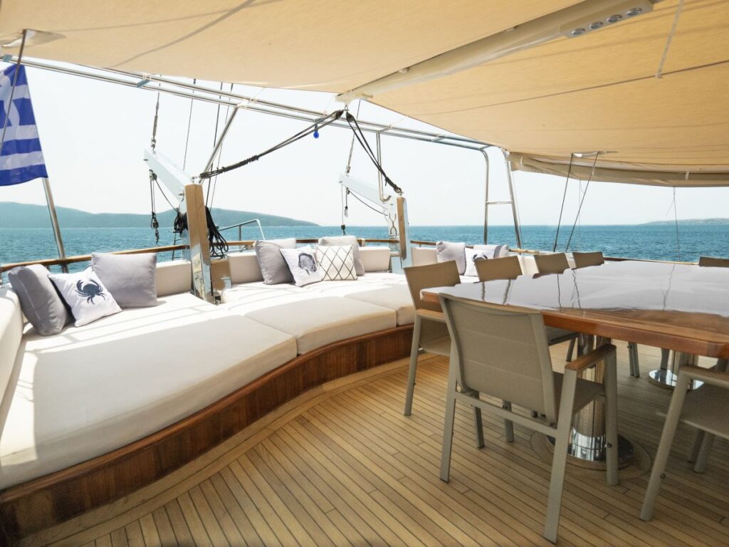 Gulet Aegean Schatz, 10 misafirinin her zaman en üst düzeyde özenle bakılmasını sağlamak için en kaliteli malzeme ve işçilikle Bodrum’da inşa edilmiştir, 5 kişilik ekibi çok yüksek hizmet kalitesini sürdürmektedir.
