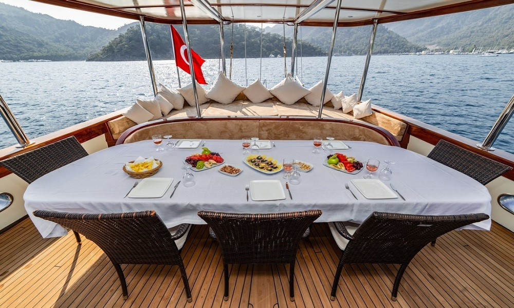 Lüks bir Göcek teknesi arıyorsanız, 6 kabini ile belki de tam da aradığınız teknedir. 12 kişilik kapasitesi ile kalabalık grupların tercihi olan gulet, şık güvertesi ve konforlu kabinleri ile dikkat çekiyor.