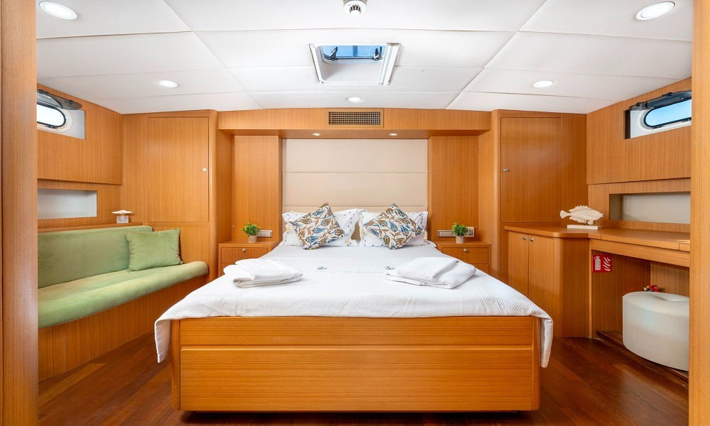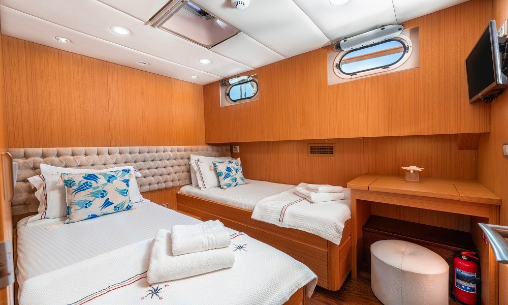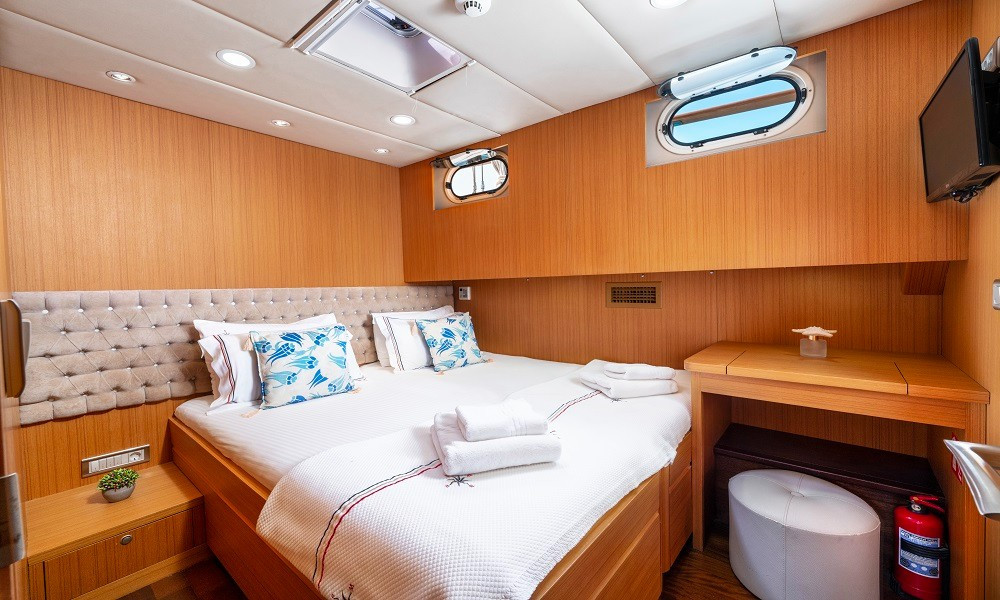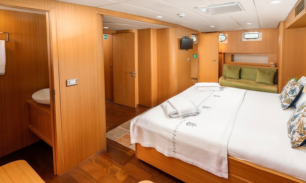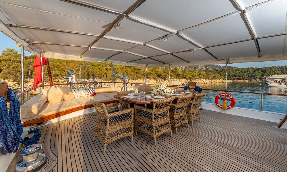 2 double, 2 master kabini ile 8 kişilik kapasiteye sahiptir. Lüks kategoride bulunan Artemis gulet, tüm şıklığı ile hakkını vermektedir. Tüm kabinleri ve salon klima ile donatılmıştır. Rahat ve konforlu döşenen kabinleri oldukça ferahtır. Yaşam alanları geniş tutulan gulette, ön ve arka güvertede oturma alanları bulunur. Ayrıca arka güverte ve salondaki yemek masaları yemeğinizi nerede yemek isterseniz sizin tercihinize göre kurulur.